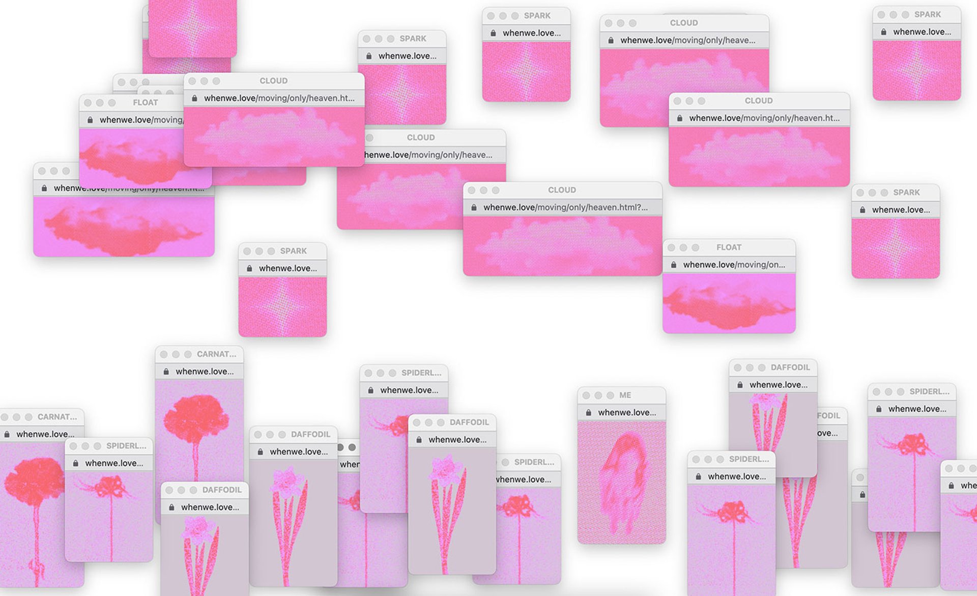 As part of her When we Love series—encounters and explorations around love and intimacy online and offline—Filipino American artist Chia Amisola produced this hypertext experience, dependent on user interaction, in one weekend. The resulting piece, assembled out of multiple browser windows that force the reader’s view beyond one tab to piece together a story, feels like a cross between a film screening, poetry reading and an ambient performance.