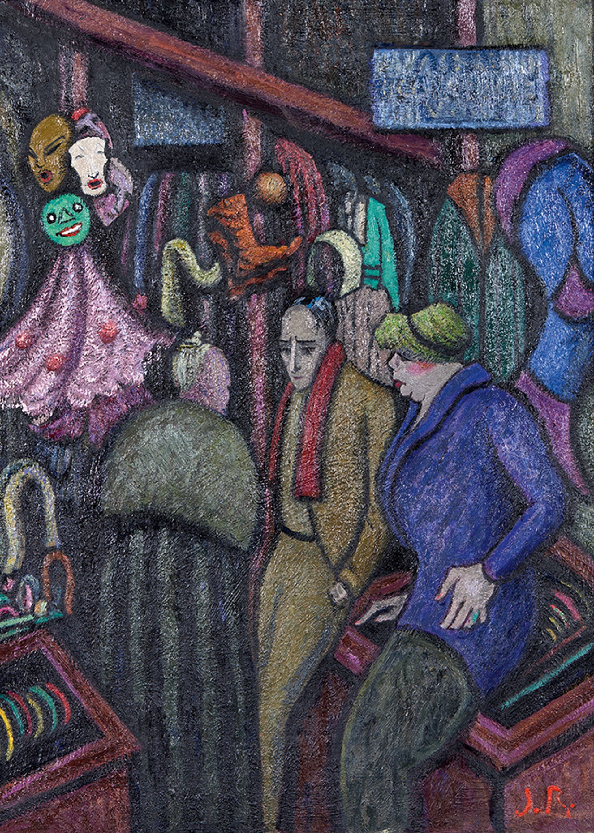 This oil painting on canvas by the French Modern artist Juliette Roche depicts two women in a costume store dressed in masculine clothing. It was painted in 1912, when women in France still needed legal permission to wear trousers. (This law was actually only abolished in 2013, although it went unenforced for decades before.) The work’s documentation of “cross-dressing” was therefore quite provocative for the time. “Far from being a voyeur, Juliette Roche herself is no stranger to the strangeness of her characters, which today we would call queer,” wrote the sociologist Éric Fassin and the art and literature scholar Joana Masó in a new essay published to coincide with Art Basel Paris. They added: “In this store, the reference to homosexuality is underlined by the presence of masks, to which the artist dedicated several works.”