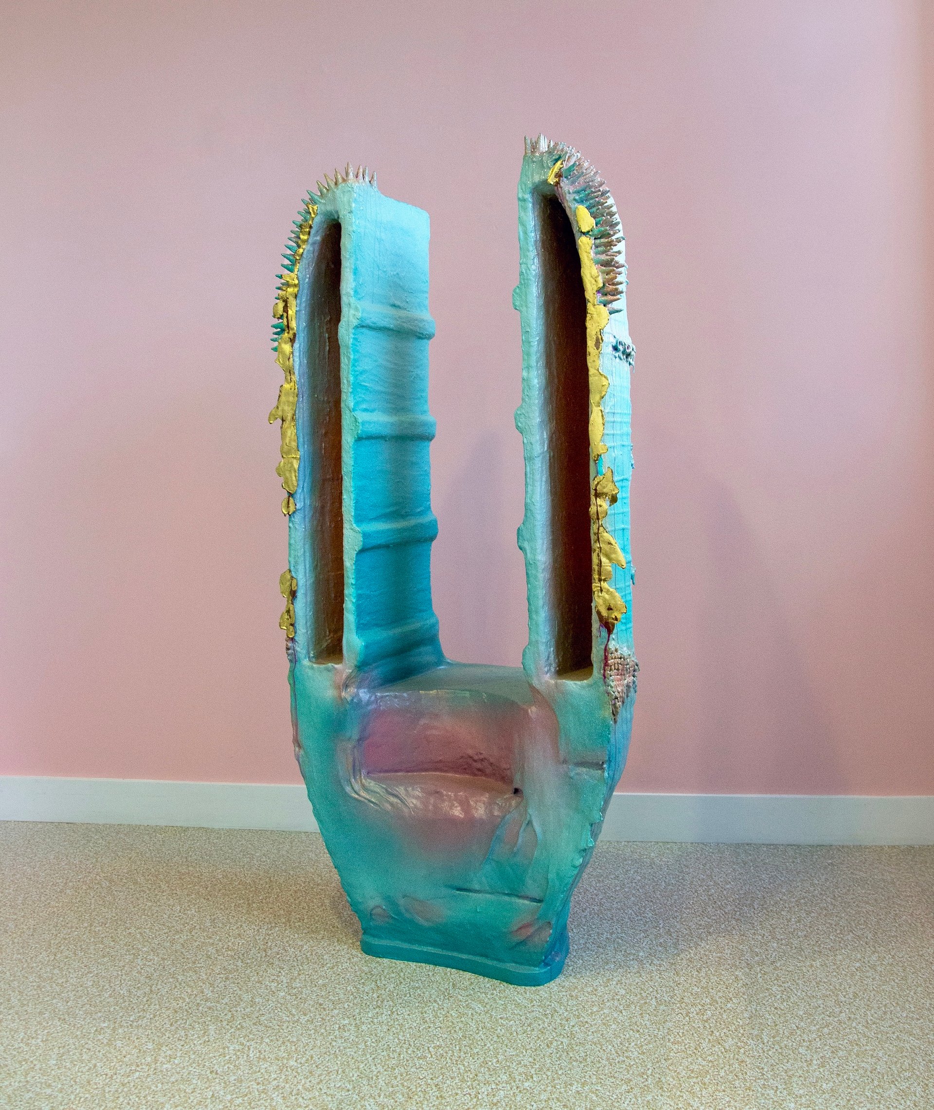 For the artist Elliot Doughtie, participating in the show had an added personal significance. Born and raised in Dallas, Doughtie left over a decade ago and rarely returns. “The lack of access to healthcare that I need and the threat to my personal safety is top of the list of reasons I left,” he says. “Anti-trans legislation aims to erase trans people from public life. It is directly tied to the erasure of the right to bodily autonomy and self-determination. My small work in this show is a direct response to that time in my life, not just in all of the negative ways but also in the reclaiming of the power within my body.”
