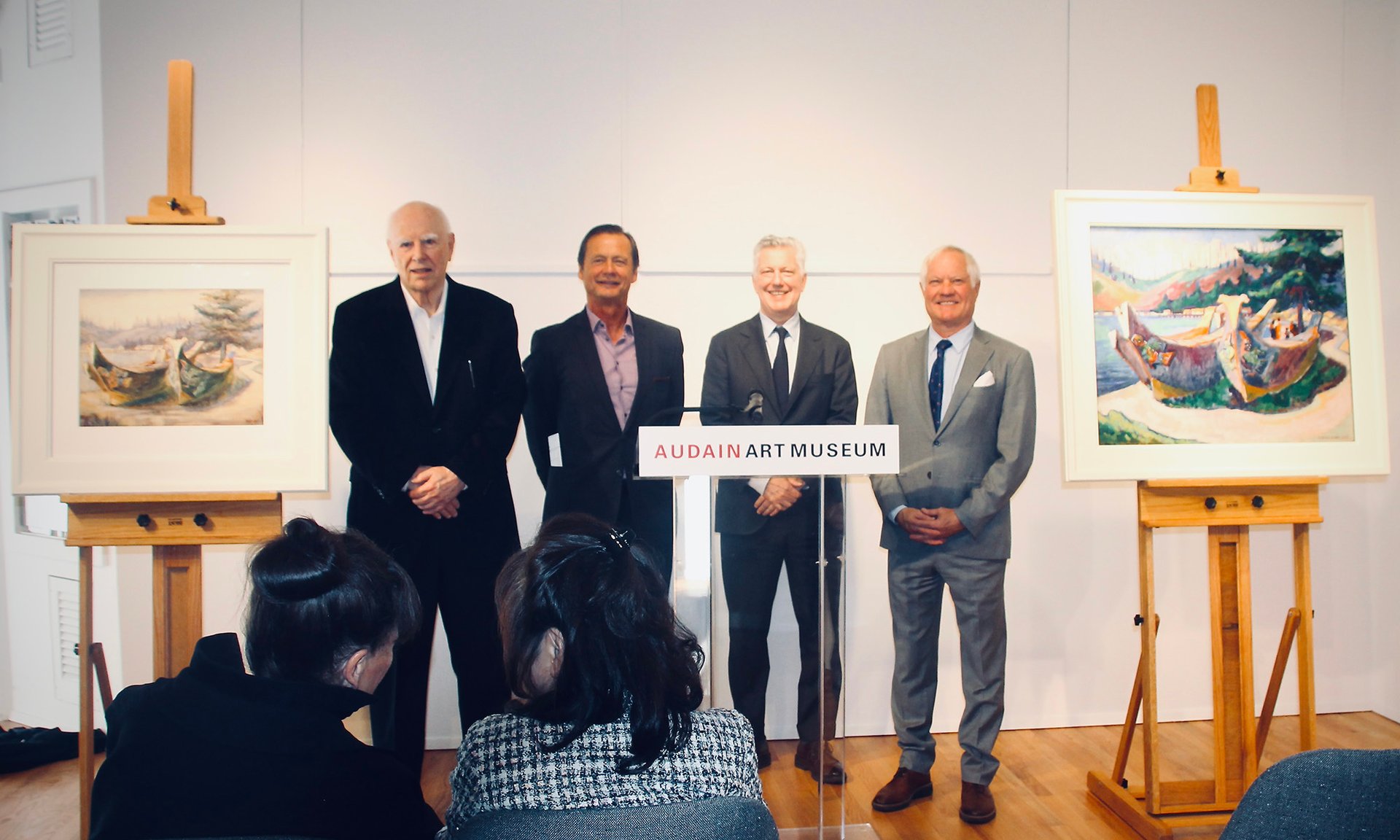 Michael Audain (left) and representatives of Heffel Fine Art Auction House and the Audain Art Museum at Wednesday's unveiling of the museum's latest Emily Carr acquisition © Hadani Ditmars