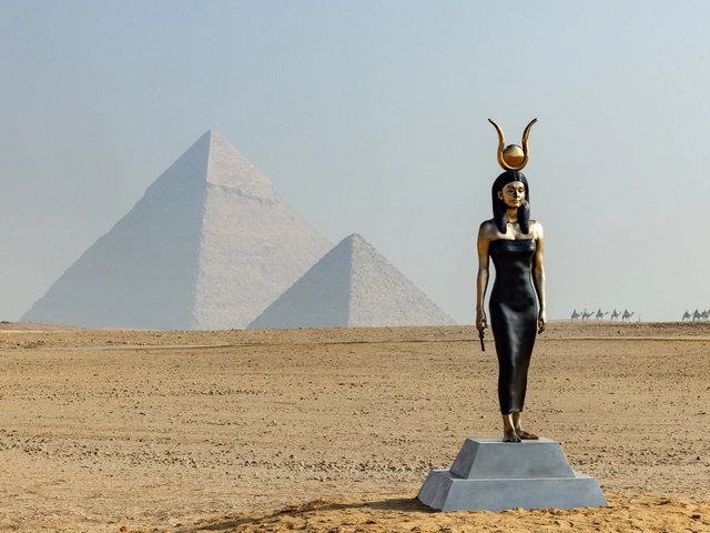 In its fourth iteration, the Forever is Now exhibition at the pyramids of Giza continues its tradition of installing contemporary works next to ancient sites. With the iconic backdrop of the pyramids an inherent part of the installations, the sculptures invoke a surreal mise en scène, often suggesting sci-fi cinematic epics.