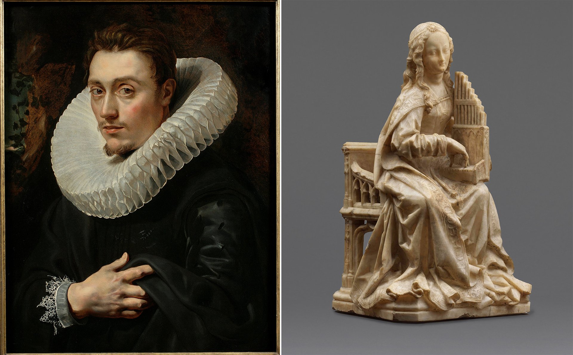 Works gifted to the Clark Art Institute by the Aso O. Tavitian Foundation include (at left) Peter Paul Rubens's Portrait of Young Man (around 1613-15) and (at right) Gil de Siloé's Saint Cecilia (around 1500) Both images courtesy the Clark Art Institute, Williamstown, Massachusetts