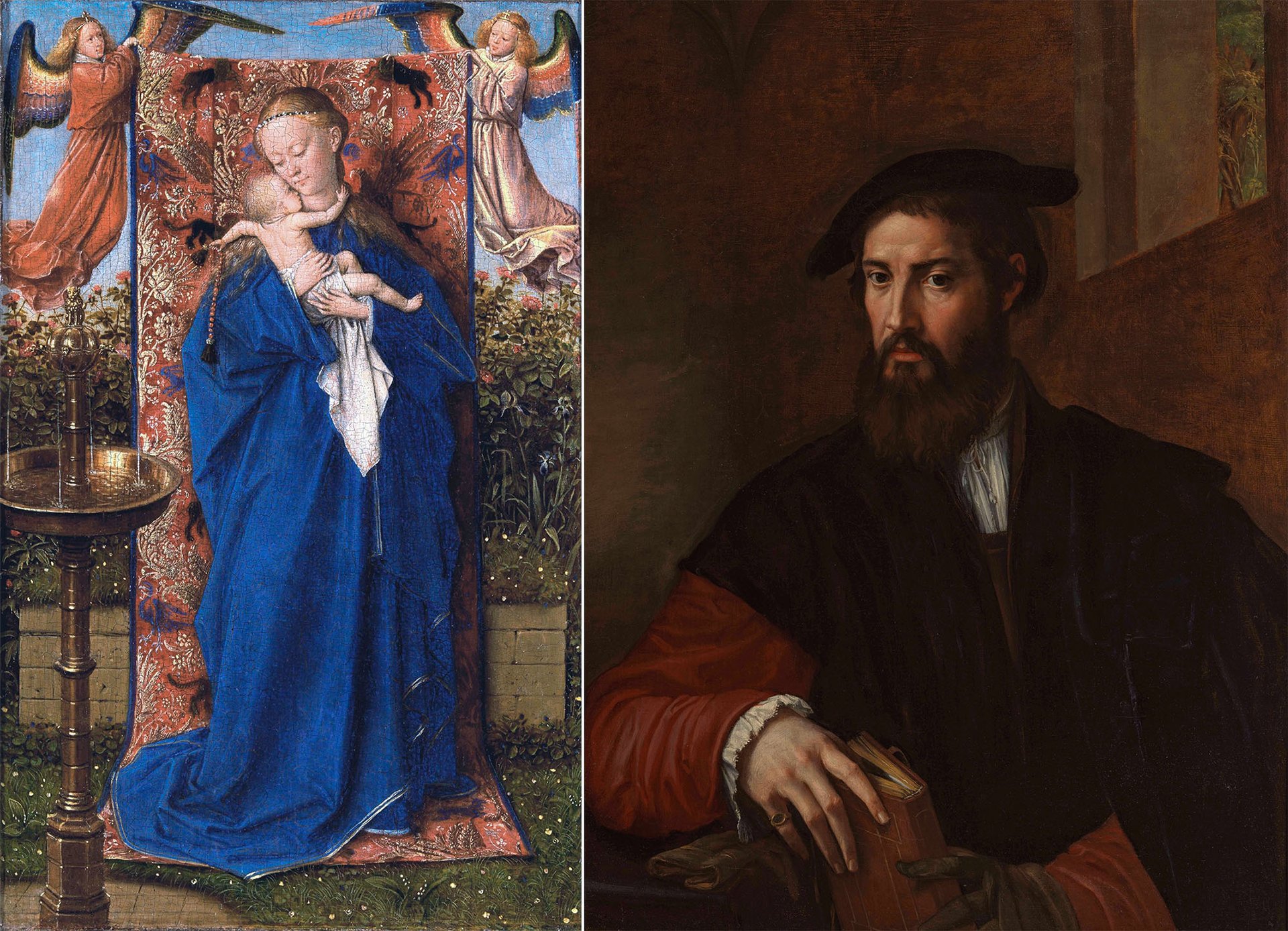 Works gifted to the Clark Art Institute by the Aso O. Tavitian Foundation included (at left) Madonna of the Fountain (around 1440) by Jan van Eyck and workshop and (at right) Parmigianino's Portrait of a Man (around 1530) Both images courtesy the Clark Art Institute, Williamstown, Massachusetts