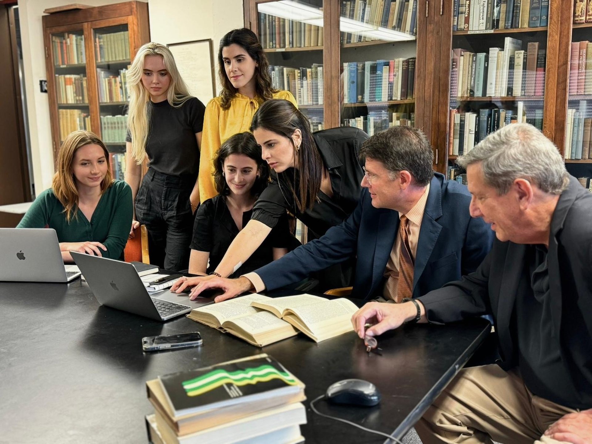 From left to right: Penn Cultural Heritage Center staff, including administrative coordinator Corinne Muller (seated, far left), research analyst Soleil Hawley (standing), administrative assistant Noor Shihabeddin (standing), research coordinator Kayla Kane (seated), research analyst Daniela Tanico (standing, center), director of research and programmes Brian I. Daniels (seated, right) and executive director Richard M. Leventhal (seated, far right). Other PennCHC project staff (not pictured) include: research analyst Alyssa Thiel, graduate student research assistant Stefano Andronio, graduate student research assistant Hakimah Abdul-Fattah, work-study assistant Maggie Yuan, intern Emily Jeong and intern Julia Orientale Photo: Penn Cultural Heritage Center at the Penn Museum