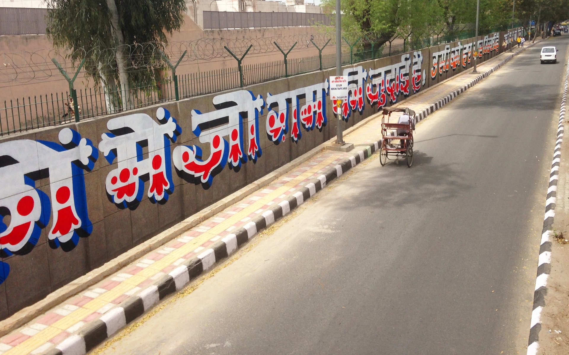 The foundation also worked with several governments. A lesser-known project was a 968-metre-long mural on the boundary wall of the Tihar Jail in Delhi. The mural comprised verses of a poem titled Chardiwari (Four Walls)—which was written by an inmate. “The typographic sign would change every 100 metres,” Bahl says. He adds that local sign printers were used for the project.