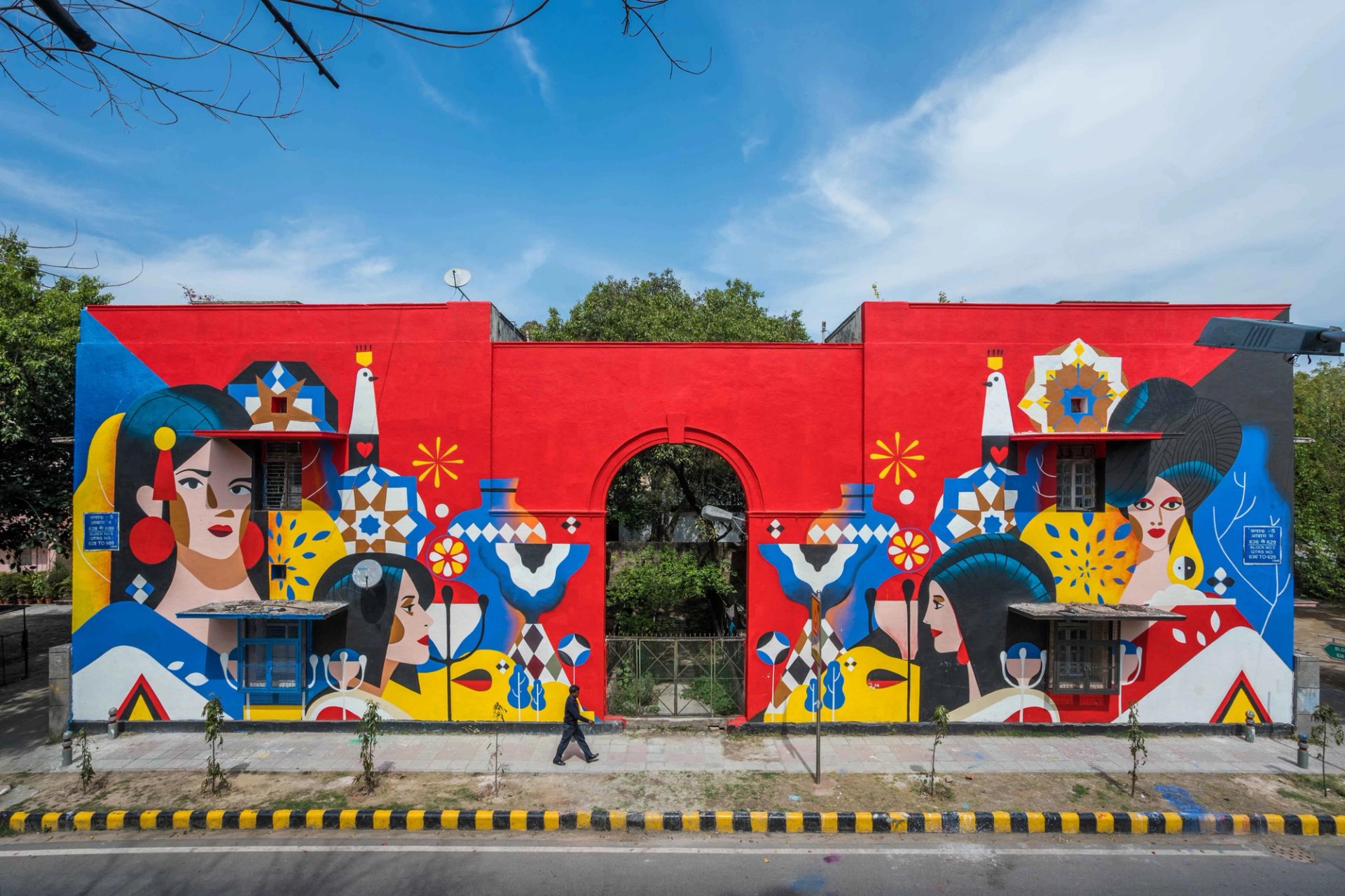 Kureshi, Bahl joined hands with Akshat Nauriyal, Giulia Ambrogi and Thanish Thomas to found St+art India in 2014. They had different professional backgrounds but shared a common objective in making art more accessible. The most notable of their projects include their work transforming Delhi’s Lodhi Colony, for which they partnered with the paint company Asian Paints. As part of the project, more than 50 Indian and international artists made murals on the large walls of the district. These featured typographical and nature symbols, as well as depictions of people who lived in the area—for example, a woman who sold parathas in the colony.