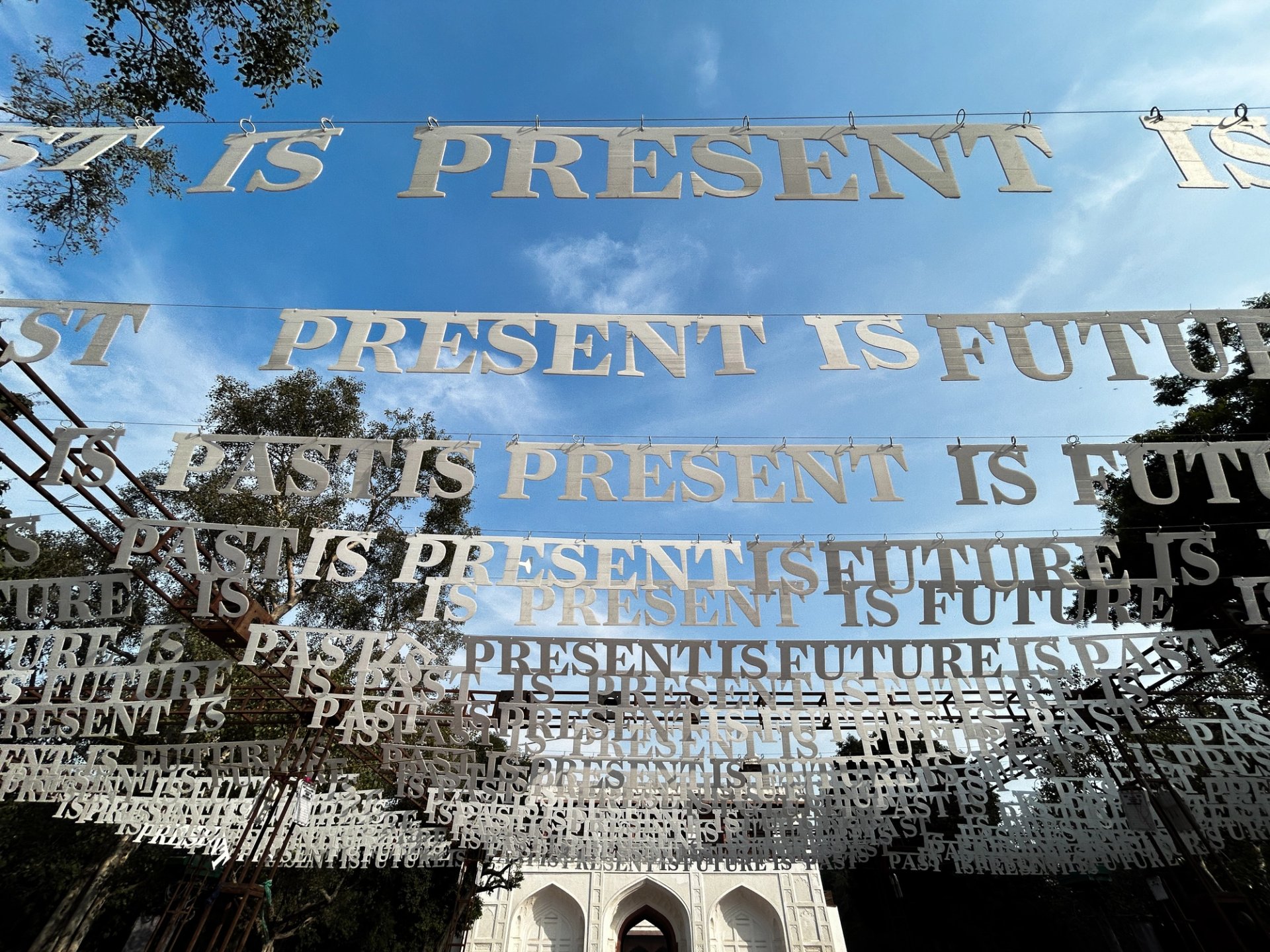 Kureshi’s main passion, however—according to Bahl—remained typography. In 2023, he created Cycle of Time, which was exhibited at the India Art Architecture Design Biennale 2023. The work involved a series of words hung like a canopy, casting varying shadows on the ground as the sun moved across the sky.