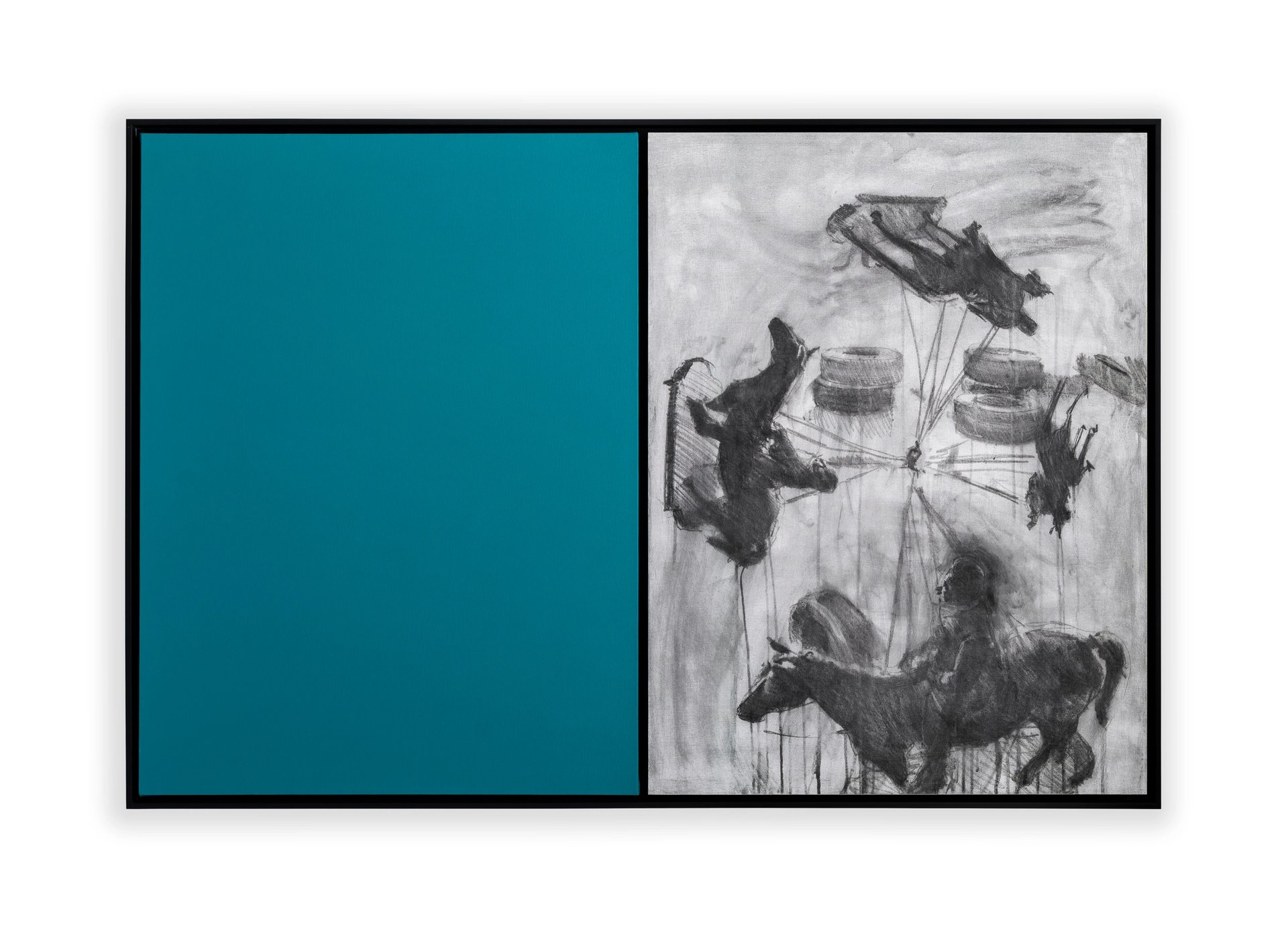 The four Houston galleries with stands at The Art Show have a special blue stripe with a star on their stand signs, designating them as part of the Spotlight On… platform. Sicardi Ayers Bacino, which specialises in representing Latin American artists, has staged a solo stand of works by the Cuban artist Reynier Leyva Novo, who is now based in Houston. Priced between $10,000 and $22,000 each, these feature images of Confederate and other monuments being torn down across the US in the wake of anti-racism protests in 2020. To create the dual-canvas works, Novo covered his paintings with layers of blue paint and worked with specialists from the conservation department of the Museum of Fine Arts, Houston, to use infrared photography to create a print of the painting that lies underneath the blue pigment.