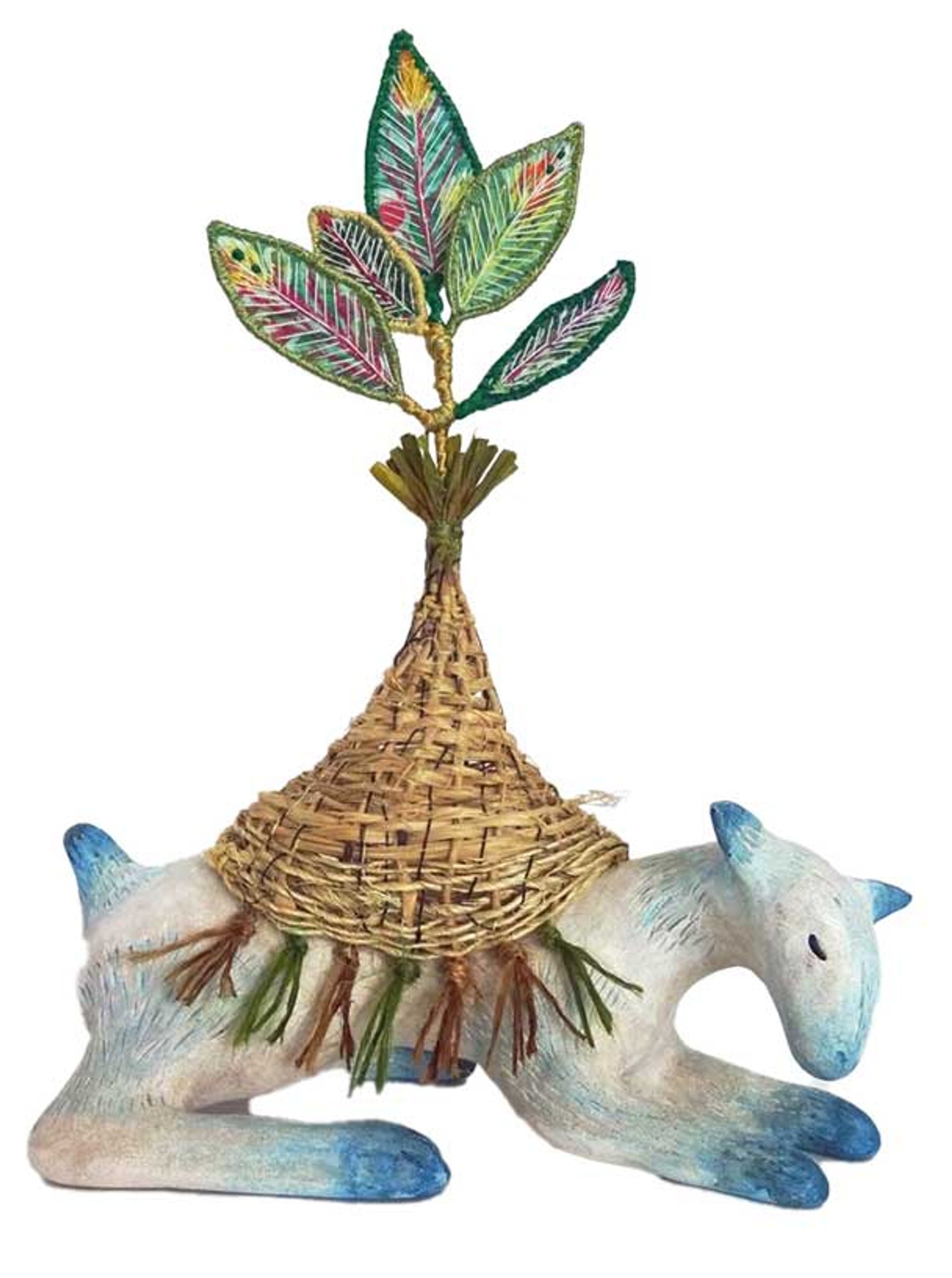 Drawing on her background in textiles, Mariko Kobayashi employs diverse techniques, including weaving, knitting, stitching and dyeing, to express her unique worldview. The artist believes that humans, animals and plants are all connected by the cycle of birth, death and return to the earth, and her works address fundamental questions about the nature of life. Kobayashi recalls that in her childhood she used to freely converse with the animals and plants in picture books. With their multiple layers of storytelling, her works similarly dissolve the boundaries between life-forms to show the possibilities of a world in which co-existence allows for complexity.