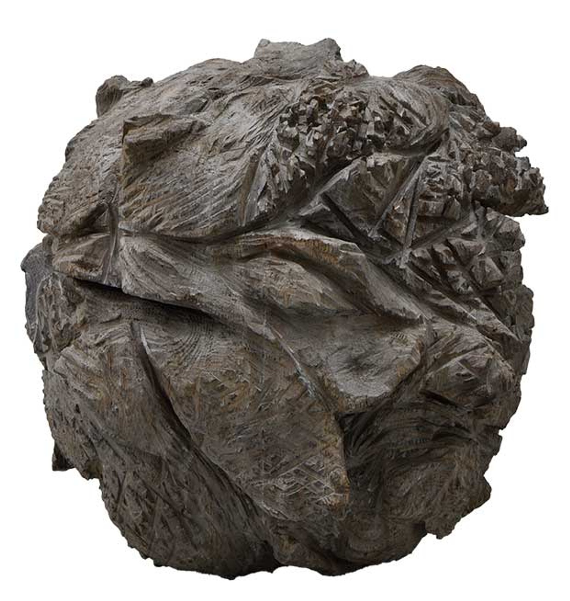 Shigeo Toya has been one of Japan’s leading sculptors since the 1970s. Principally working in wood, he is dedicated to interrogating the structures and principles of sculpture. Whereas traditional Western sculpture has a basic vertical structure at its core, Toya begins by carving a single side before rotating the work to create a series of peaks and troughs. The result is an intricate surface structure that refuses a clear reading of its interior composition, as exemplified by Mass of Folds III (2015).