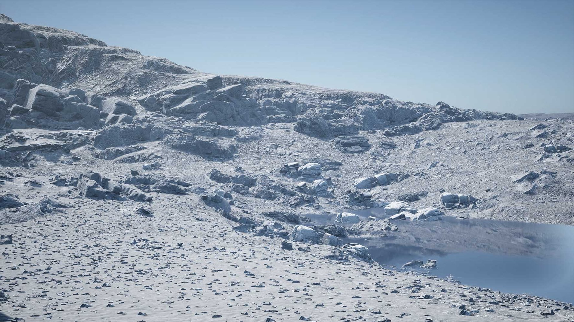 Yuki Harada’s Waiting for (2021) is a digital animation and narrative performance made with the same CGI technology used to produce video games, movies and television. A virtual camera wanders through three infinite landscapes generated from model images of earth as it looked a million years ago or as it might look a million years from now. Reverberating throughout these worlds devoid of life are the common names of more than 20,000 animal species which are recited by the artist over the work’s 33-hour-and-19-minute duration.