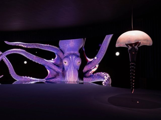 The myth of Prometheus, condemned to eternal punishment for stealing fire from the gods and giving it to humankind, inspired Koizumi to explore issues around technological progress. In his earlier series of works, VR headsets immerse the viewer in the experience of living with fatal motor neurone disease (Prometheus Bound, 2019), being a migrant labourer (Prometheus Unbound, 2021), and merging into a collective body (Prometheus the Fire-Bringer, 2023).