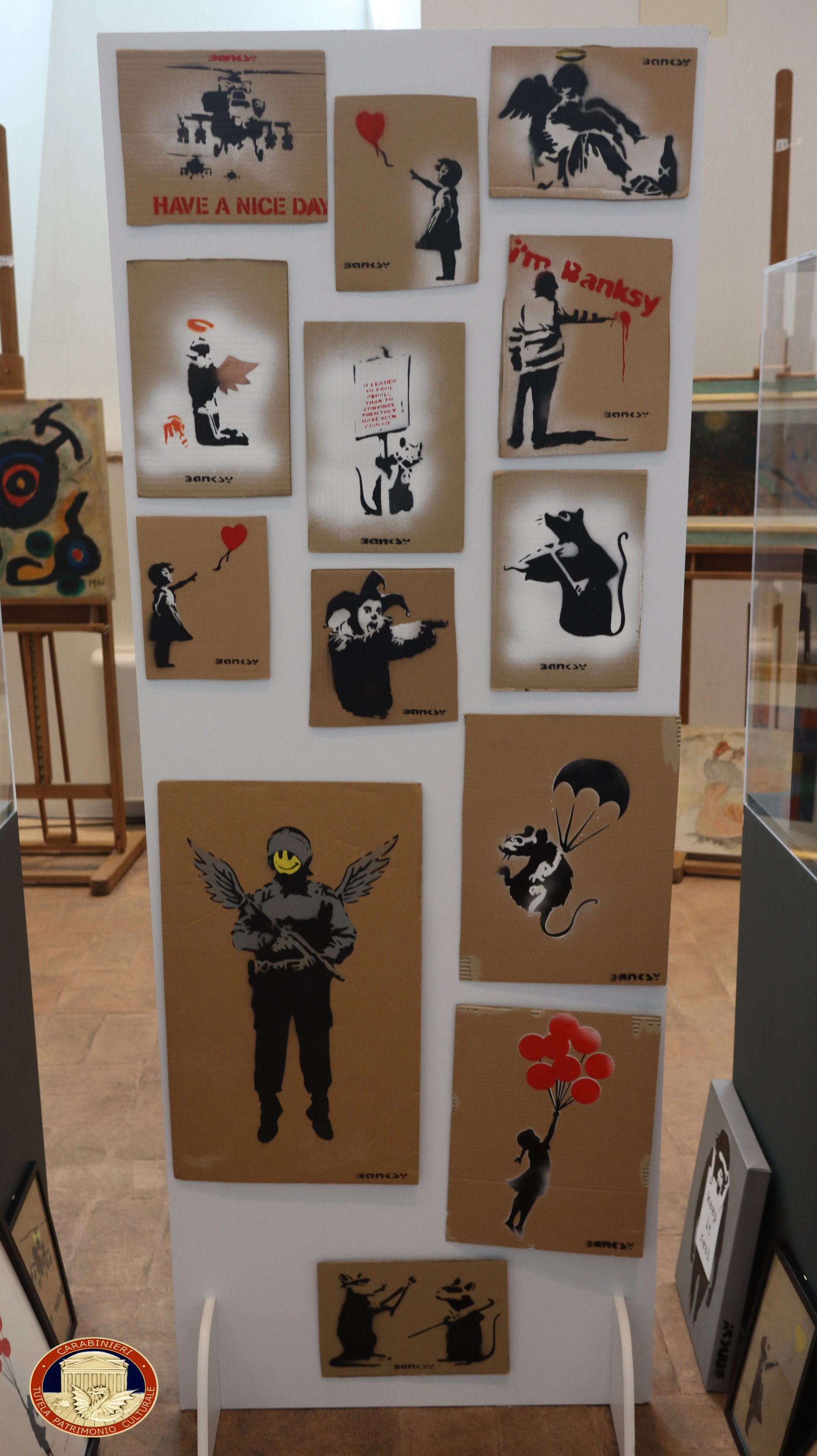 Some of the seized works purportedly by Banksy © Carabinieri - Cultural Heritage Protection Command