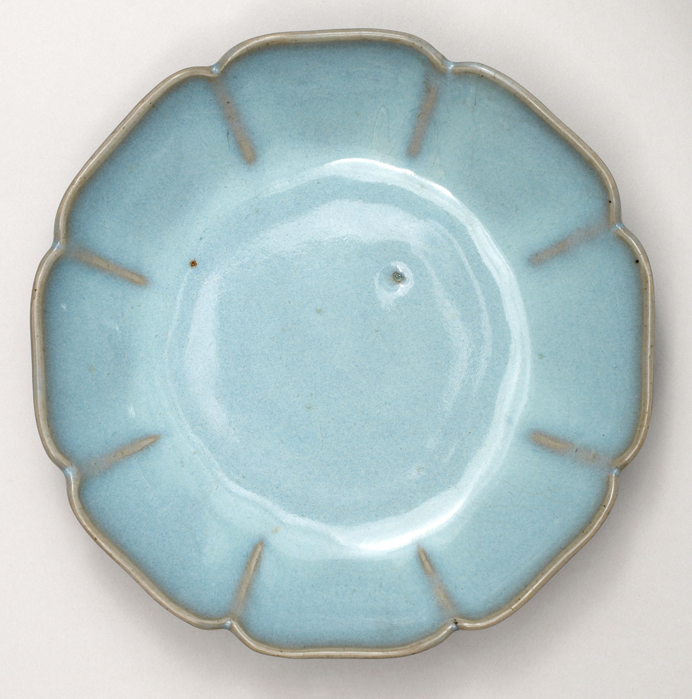 Jun stoneware dish in form of eight-petalled flower with rounded sides, NorthernS ong dynasty, 11thC-12thC