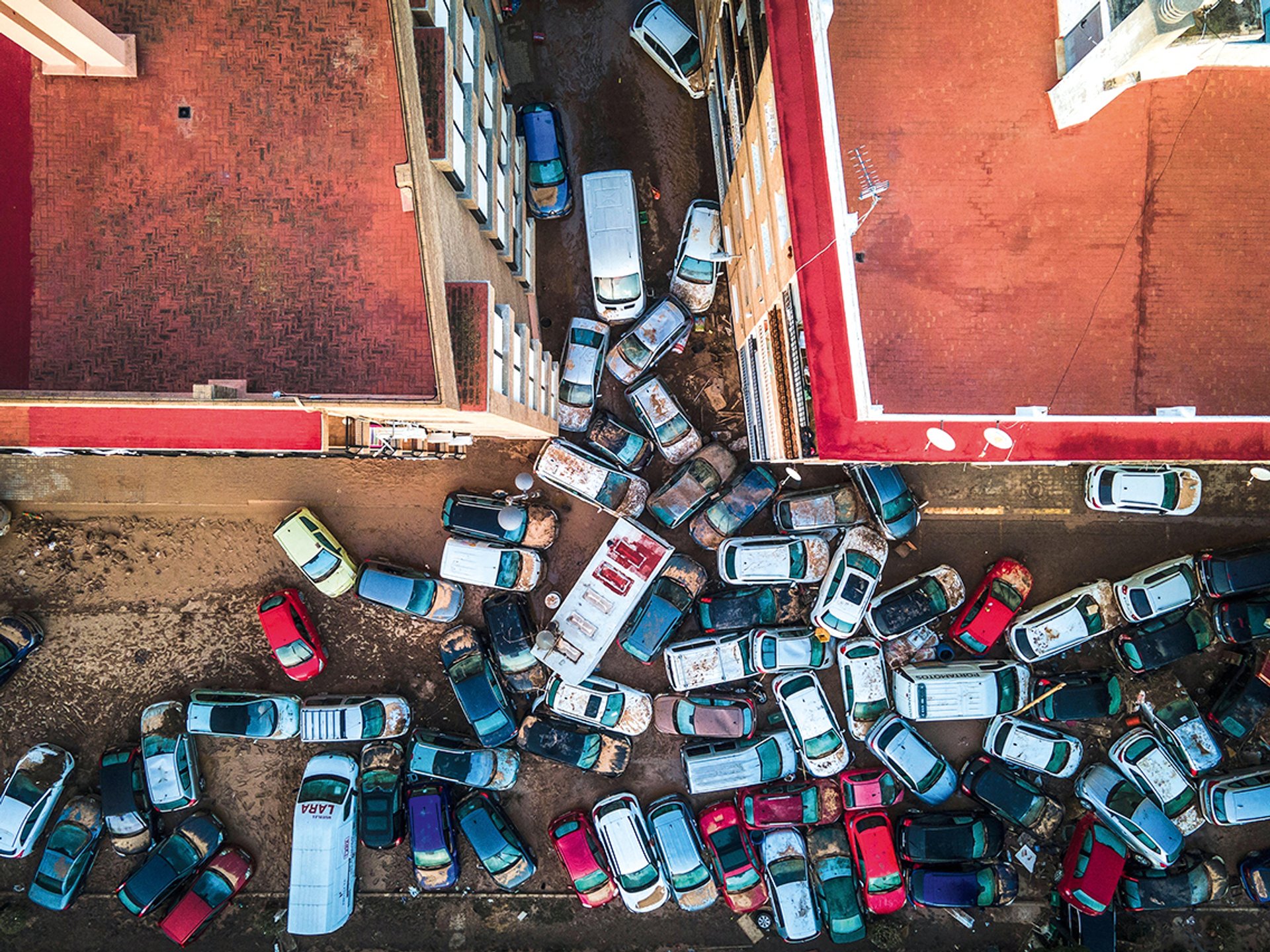 Cars were swept away and piled up in Alfafar, a scene that was repeated across the region Photo: Angel Garcia; Associated Press/Alamy Stock Photo