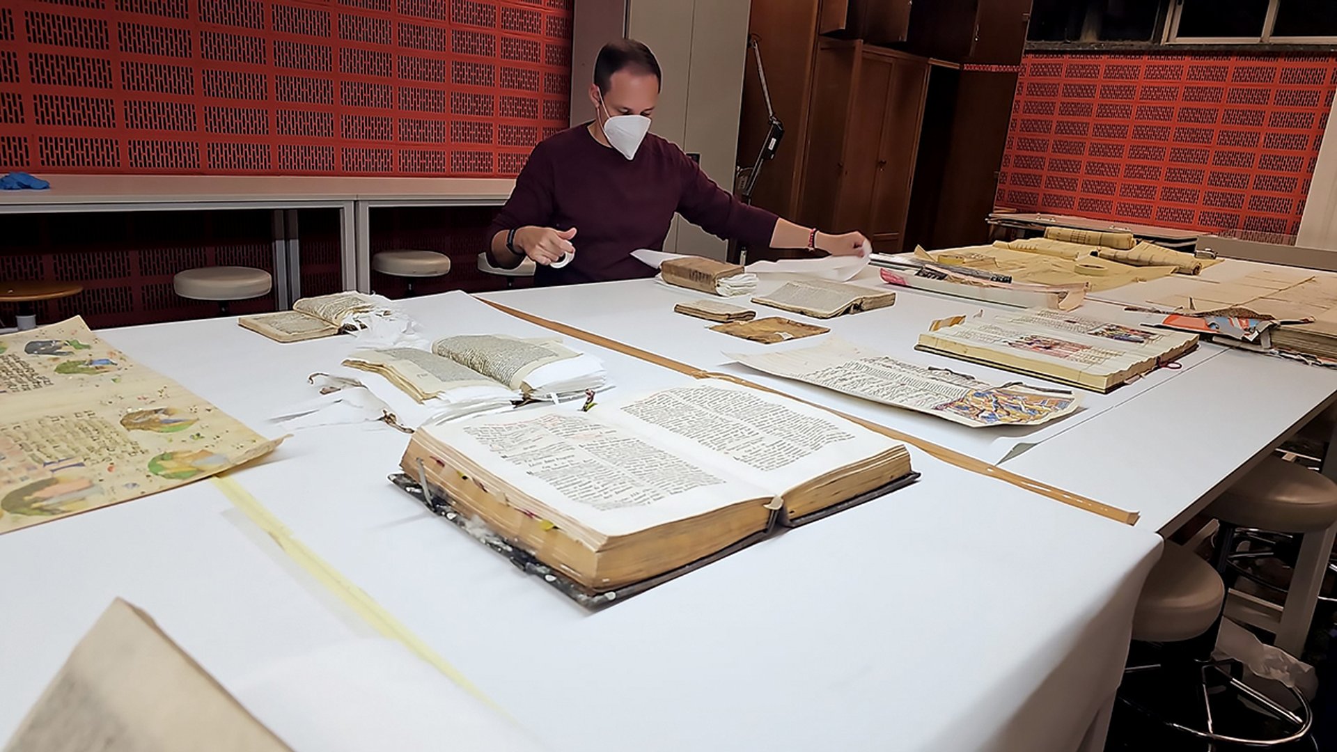Works from Algemesí’s historical archive (right) are being dried in the University of Valencia, along with works of art from a retrospective on Messa, which had been on show in the town’s Centre of Contemporary Art L’Esart Courtesy Alexandra Coego
