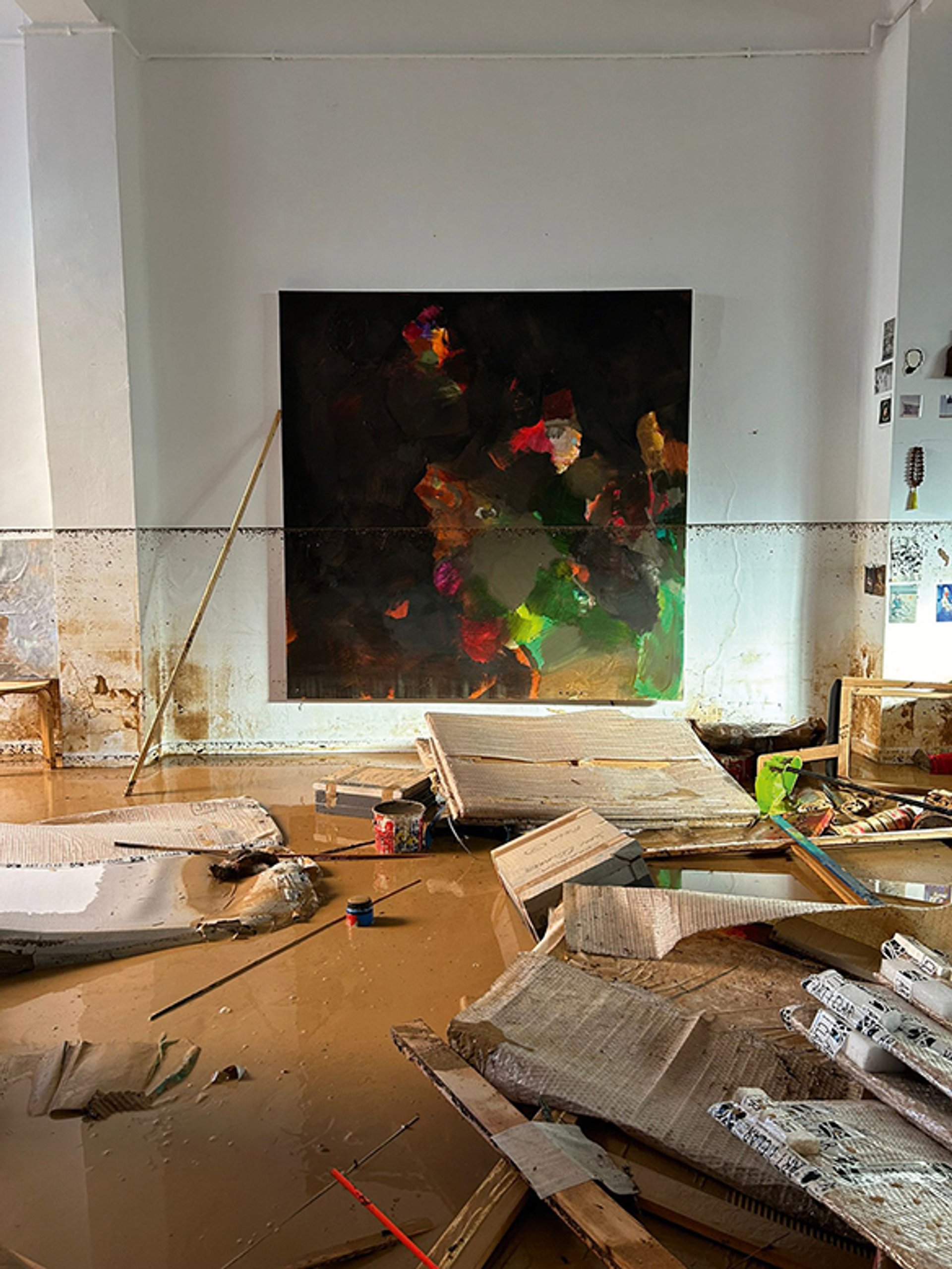 The artist Juan Olivares’s studio was already under a foot of water when he was alerted that the nearby ravine had overflowed. Twenty-five years of his work was stored on the ground floor of his home in Catarroja, one of the towns hardest hit by the floods. “I tried to save as many paintings as possible by moving them upstairs until the water reached my chest,” he tells The Art Newspaper. Olivares, who is internationally exhibited, returned to his studio the next day to find destroyed works, ruined tools and 20cm of mud. The basement stored a collection of his own pieces, two for every series he has produced throughout his career. “I haven’t checked yet, but I don’t think anything else can be saved,” he says.