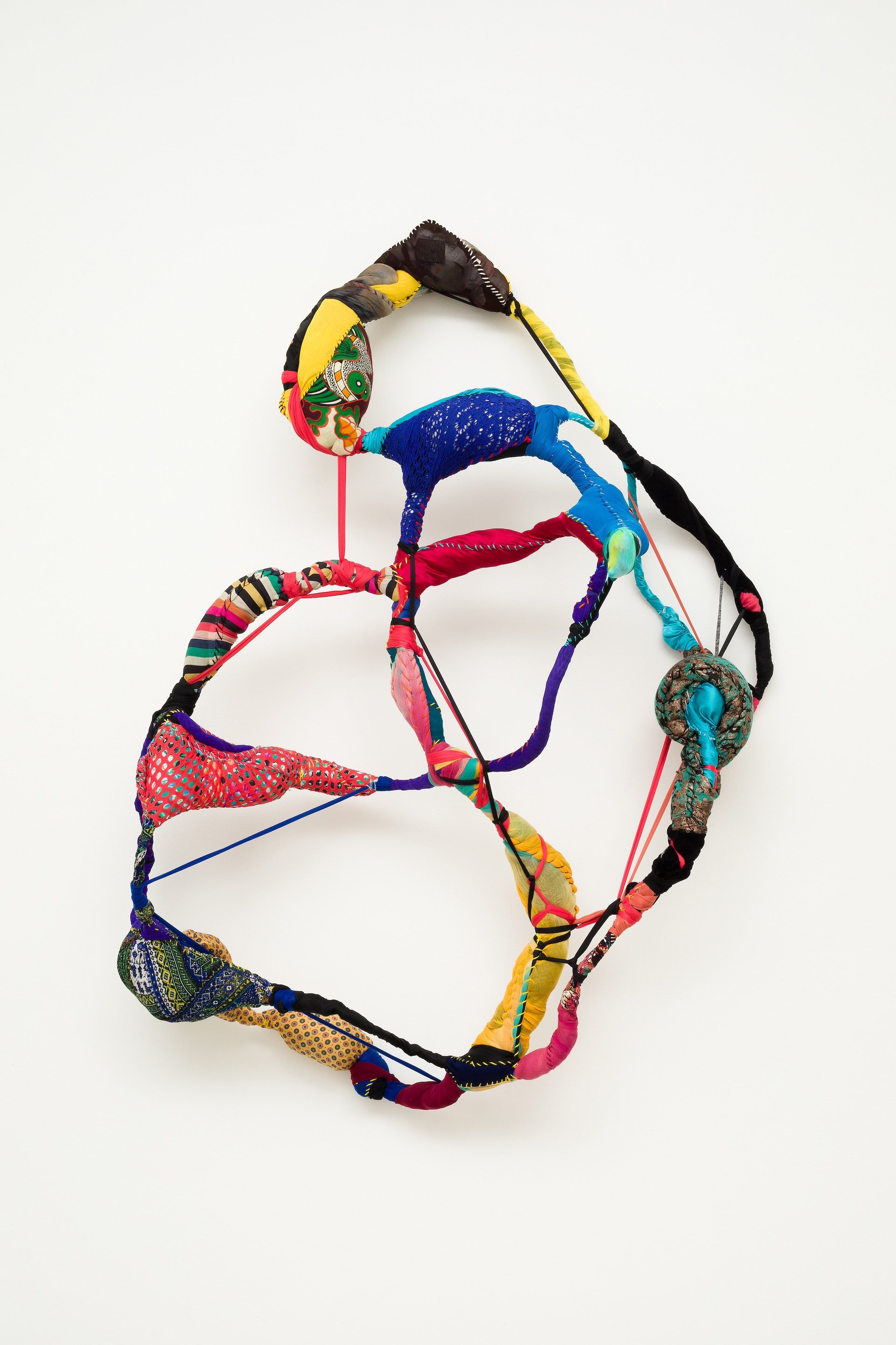 Sonia Gomes combines secondhand textiles with everyday materials, including driftwood and wire, to create abstract sculptures such as Untitled from the series Torções (twists, 2021) Photo: Bruno Leão. © Sonia Gomes. Courtesy the artist and Mendes Wood DM