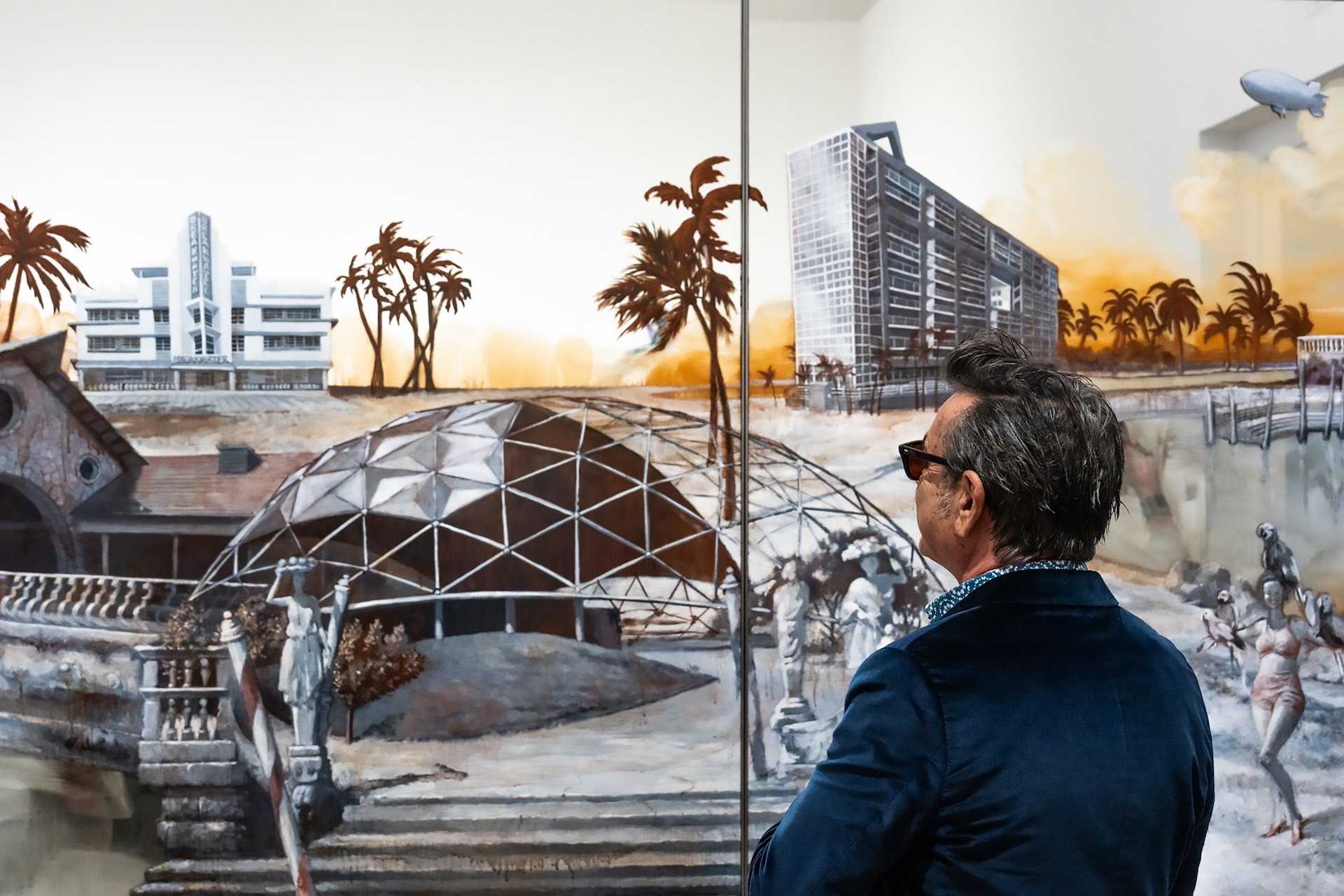 Rachel Feinstein’s exhibition traces nearly three decades of the artist’s multifaceted career, marking her first major exhibition in her hometown of Miami. The centrepiece is the new site-specific commission, Panorama of Miami (2024), a scenographic mirrored wall panel spanning 30ft that evokes Feinstein’s memories of the city and how it has shaped and continues to influence her practice.