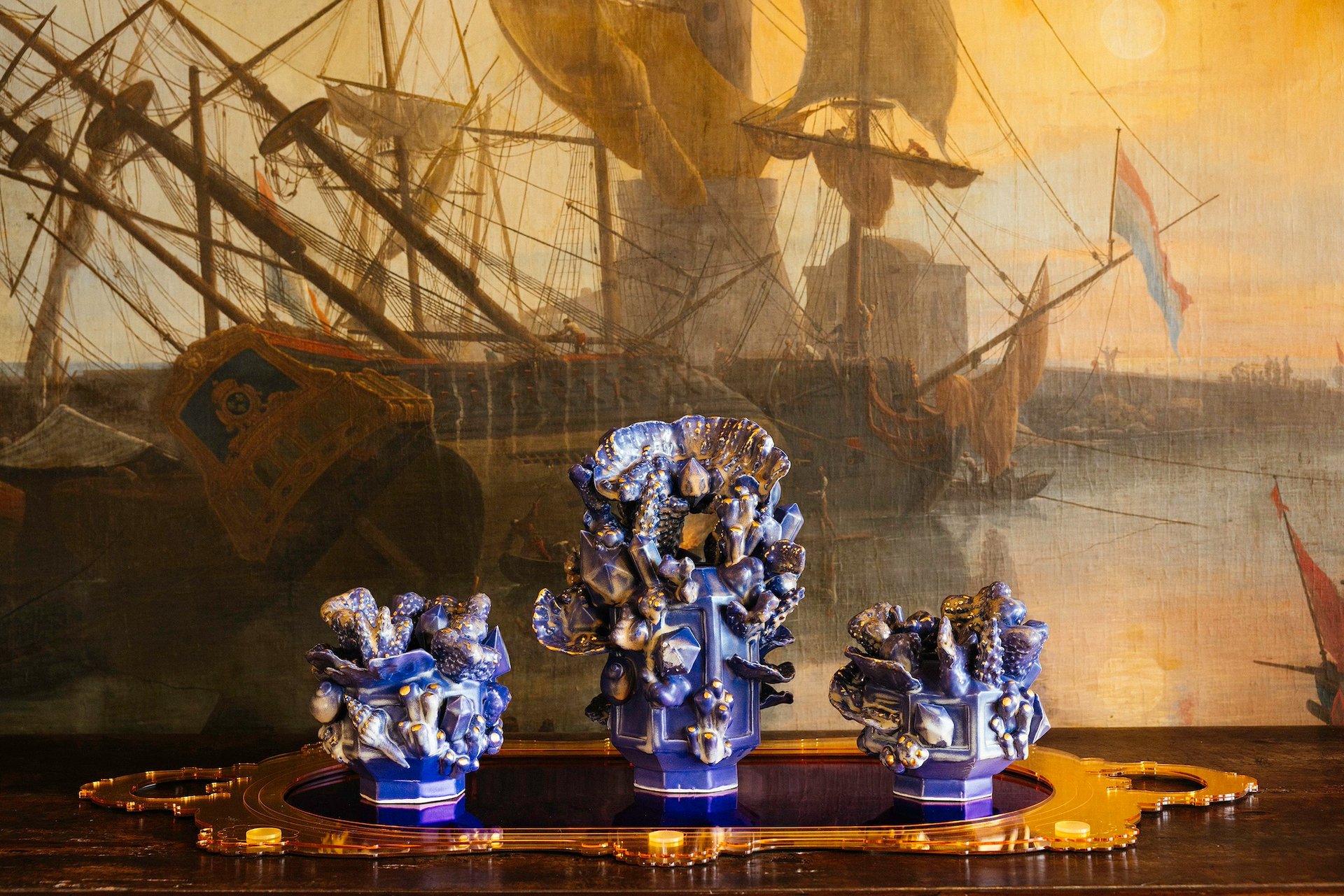 “My approach to making objects combines digital fabrication technologies with traditional ceramic techniques,” Shapiro says. “The resulting artworks not only highlight each room’s distinctive characteristics but also feature a combination of forms from the natural world with Vizcaya’s design elements, blending architectural and organic shapes.” B.S.