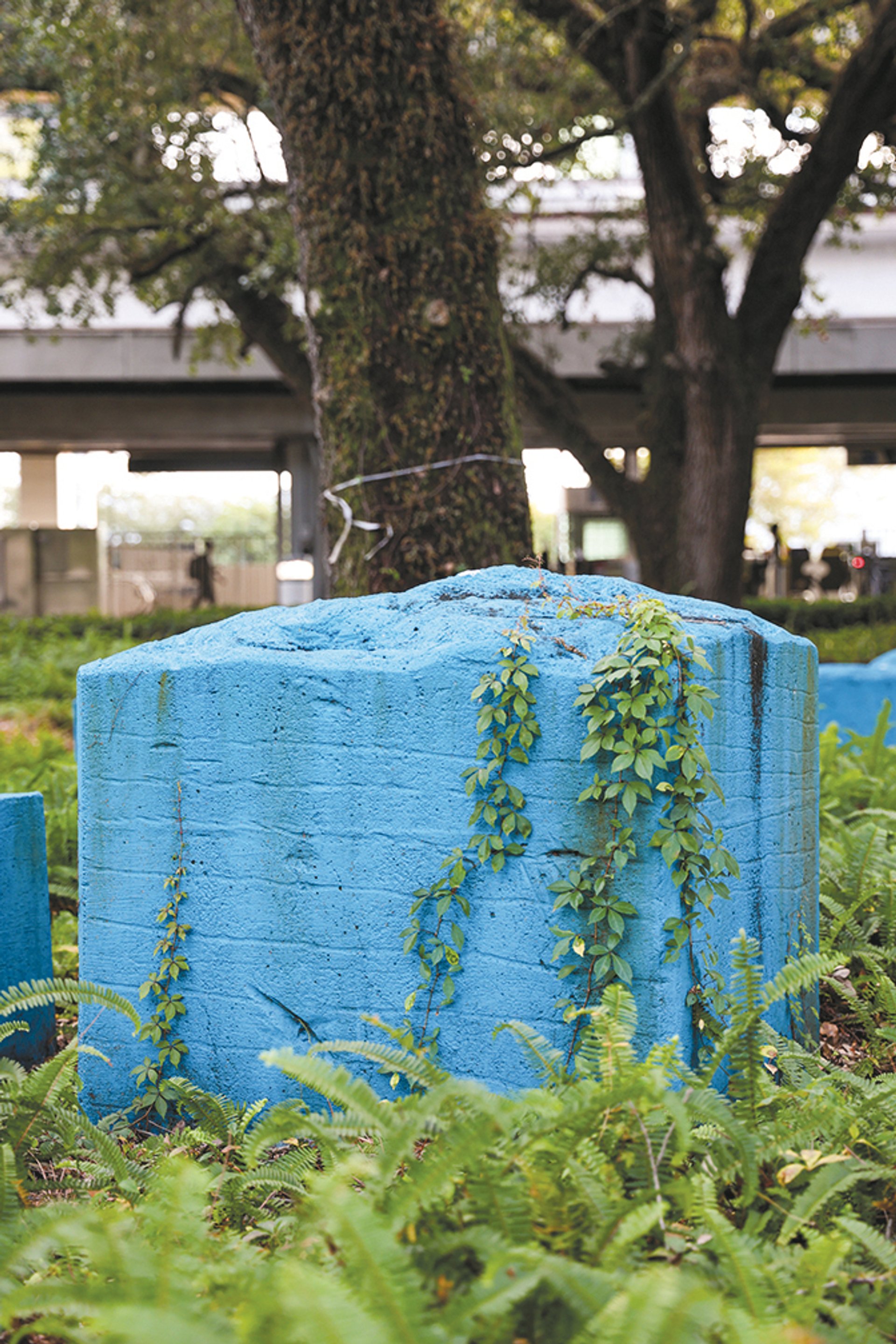 The concrete blocks, which evoke tombstones, are melancholic but inviting, place markers that also offer places to sit and remember. It can be easy to miss them, not for their imperceptibility but rather their camouflage; the stones have not been overtaken by the foliage but instead seem to have sprung from it. For Natalia Zuluaga, the co-director of Name Publications and the recently announced chief curator at the Patricia & Phillip Frost Art Museum at Florida International University, Blue Station Stones reminds her of how the city is designed so that we might miss—and eventually find—its true touchstones.