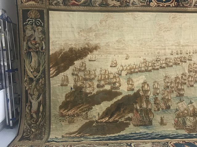 The artist has been thinking about the home through the lens of accessibility since discovering that they are deaf earlier this year. But the tapestries predominantly spring from Kari’s relationship with their grandmother, who left the Levant for the US in the 1950s.