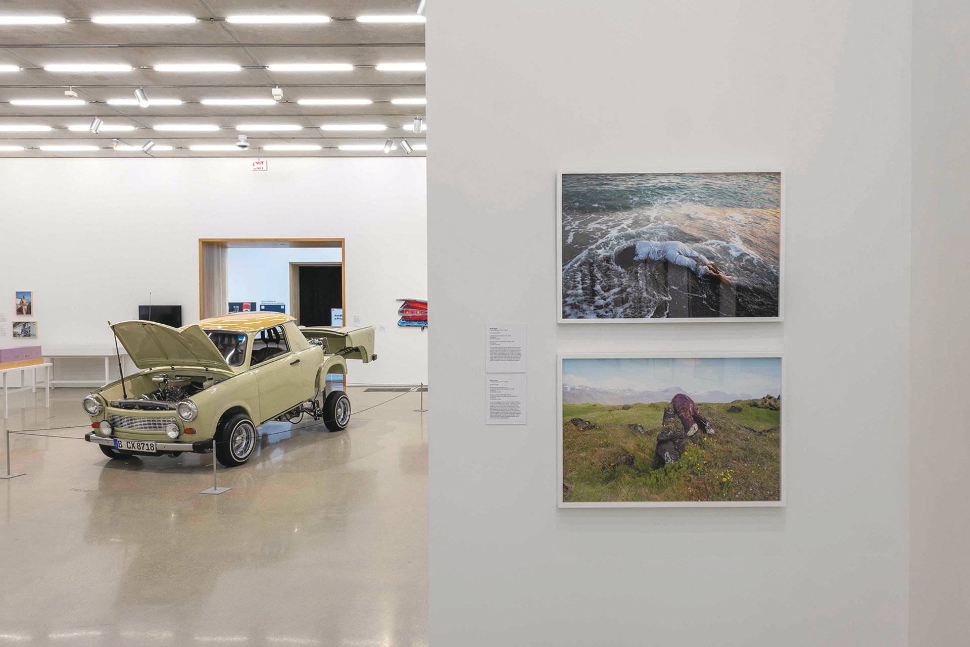 An overview of Xican-a.o.x. Body with, at left, Liz Cohen’s Trabantimino, a witty nod to low-riders based around the infamous East German Trabant