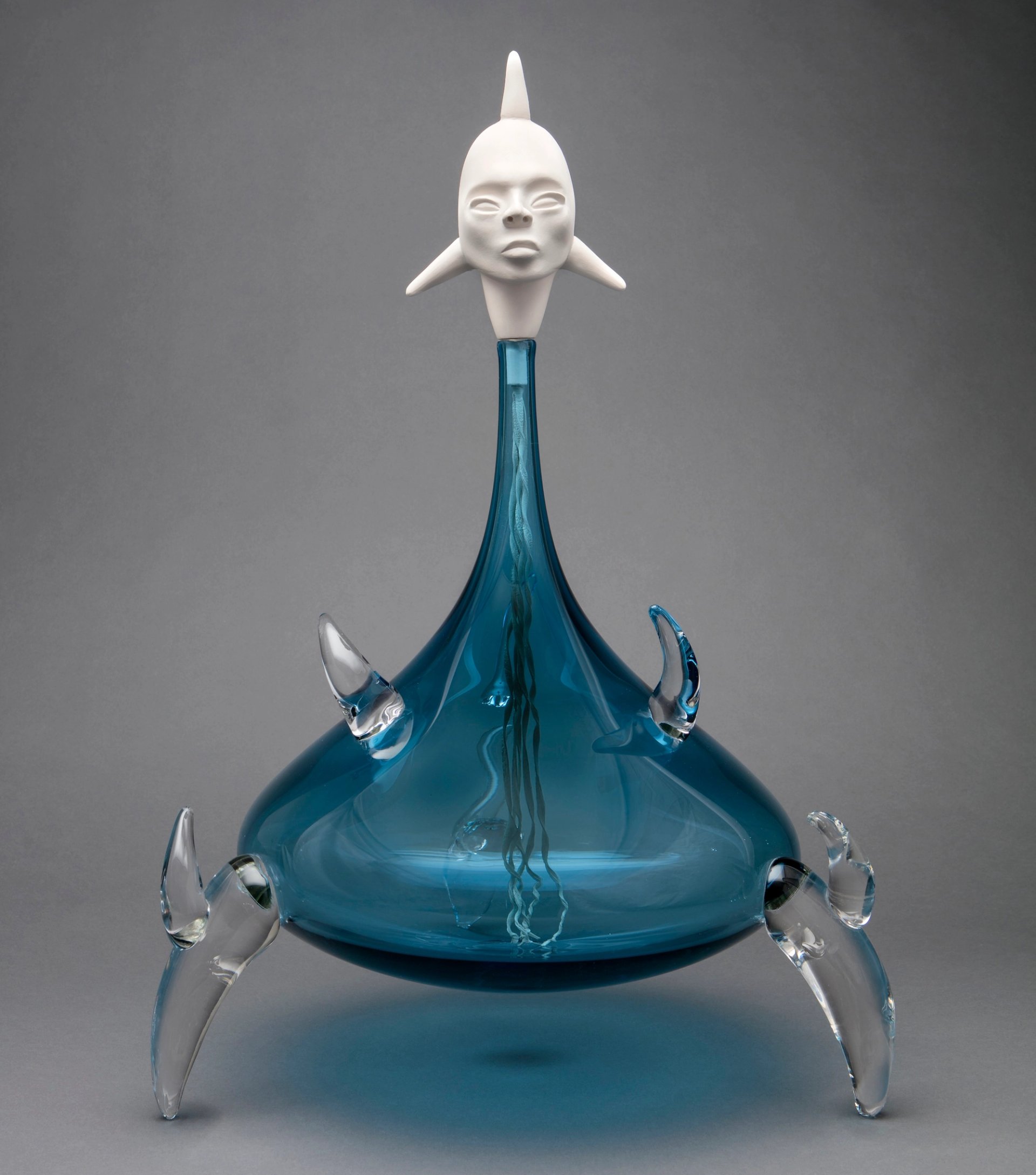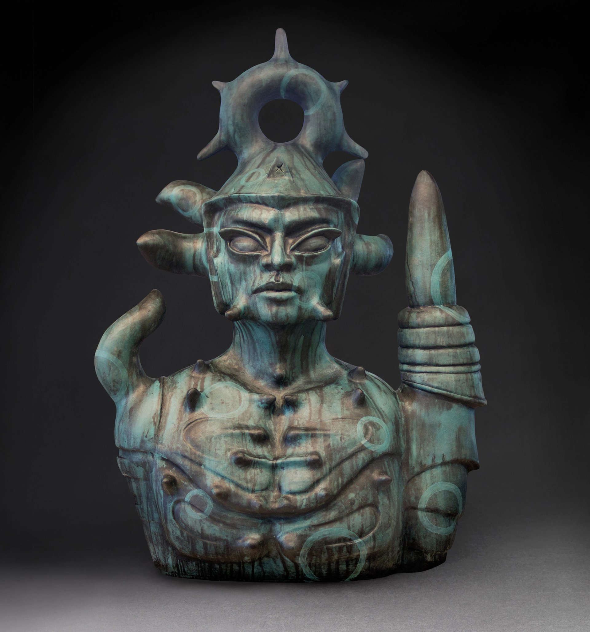 Translator 2180, a glass-and-fired-clay piece from Ortiz’s Revolt 1680/2180 series that shows futurism and science-fiction influences Photo: Addison Doty; © Virgil Ortiz