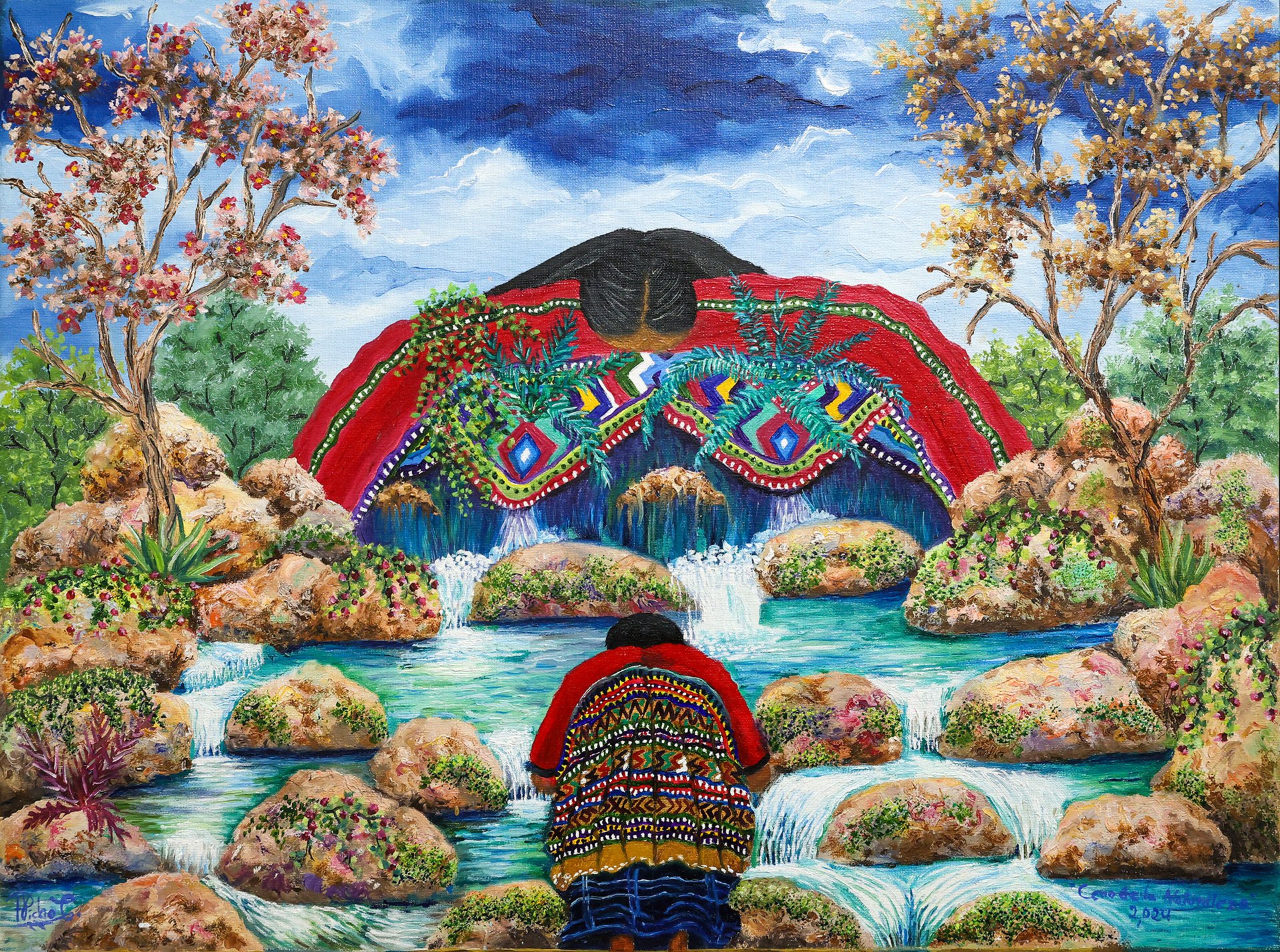 Paula Nicho Cumez’s Seno de la Naturaleza (bosom of nature, 2024) is on the stand of Guatemala City gallery Proyectos Ultravioleta. The gallery’s director says that the US is its biggest market, and is aware that “everything could change suddenly” Photo: Liliana Mora