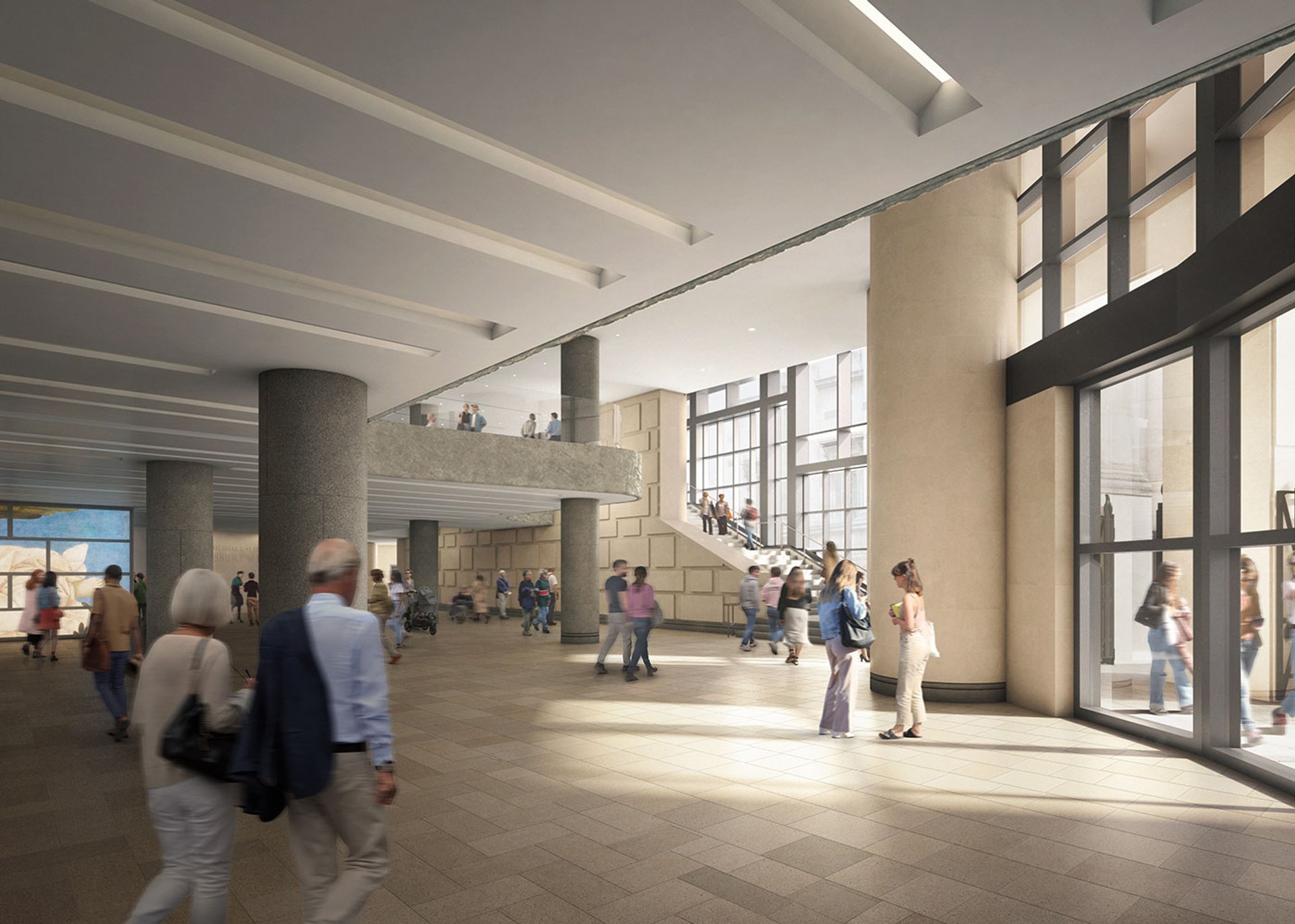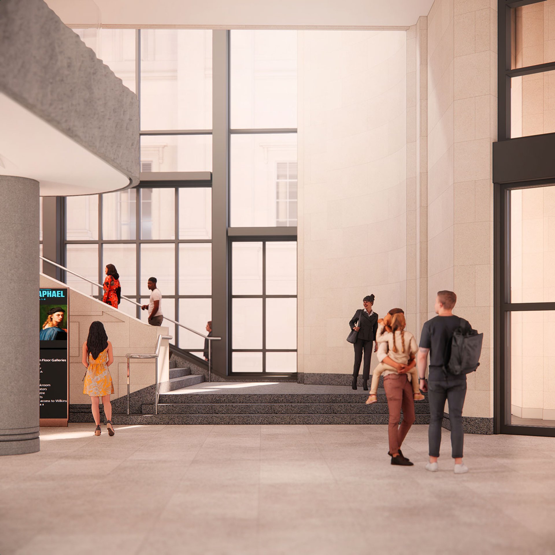 Architect's rendering of the entrance to the Sainsbury Wing, National Gallery, London Render: Selldorf Architects