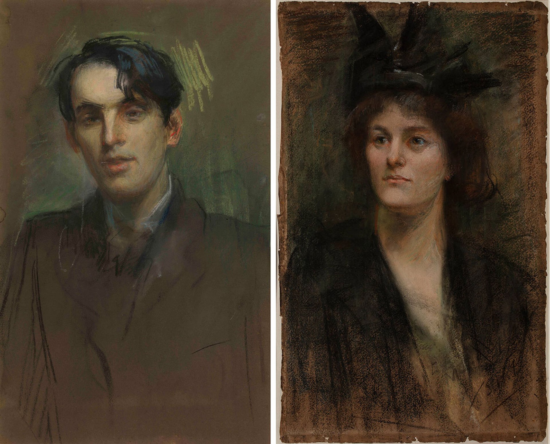 Sarah Purser, portraits of her friends the poet WB Yeats (1898, left) and the object of his unrequited love, the revolutionary Republican campaigner Maud Gonne (1898) Hugh Lane Gallery