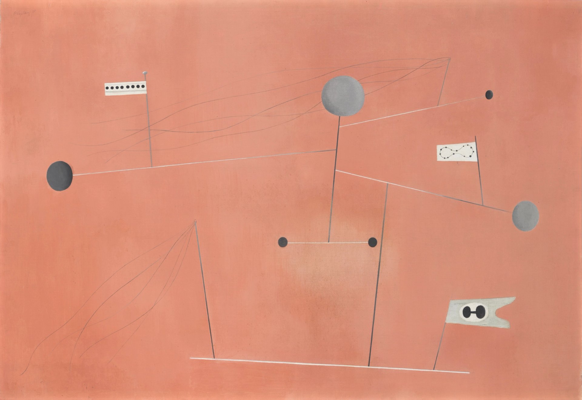 Paule Vézelay‘s Construction. Grey Lines on Pink Ground (1938) © Estate of Paule Vézelay. Photo: Tate