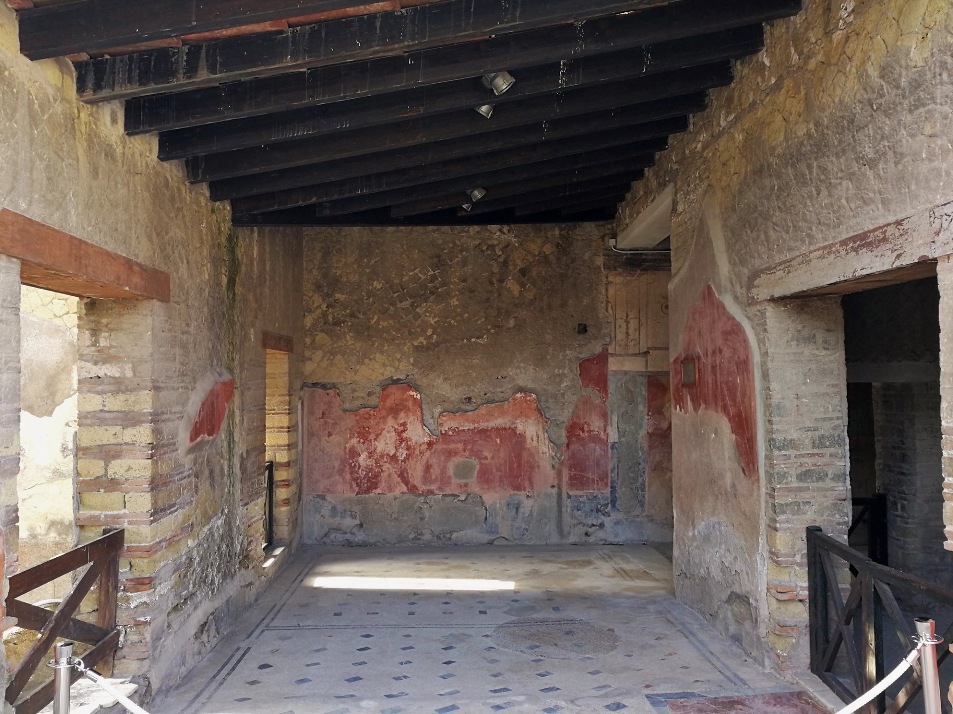 Another room in Casa della Gemma, with the walls painted Pompeian red