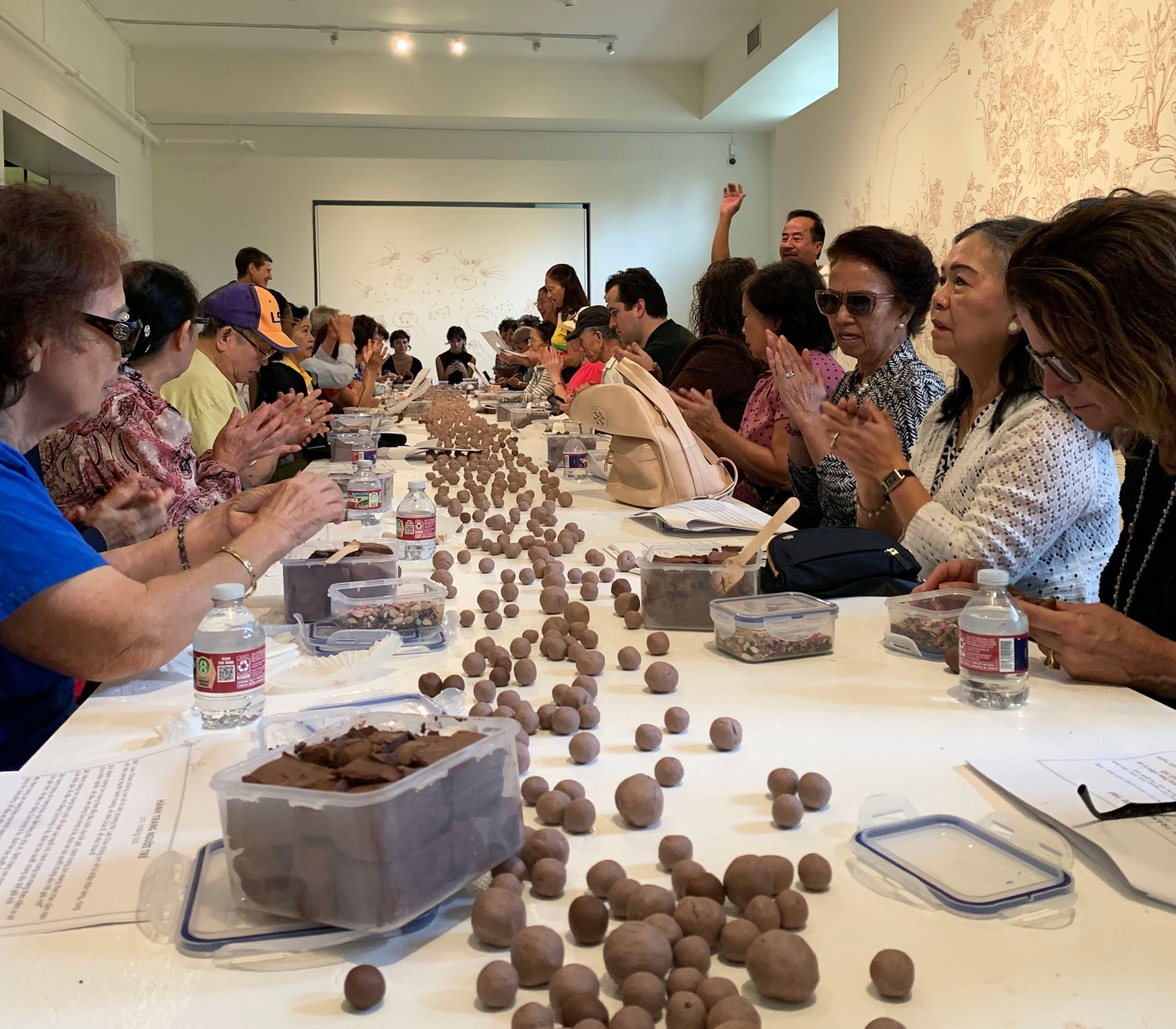 A seed-ball workshop with elders from New Orleans's Vietnamese community as part of Tuan Mami's collaborative project Seeding the Future (2024) at Xavier University of Louisiana Art Gallery Benjamin Sutton
