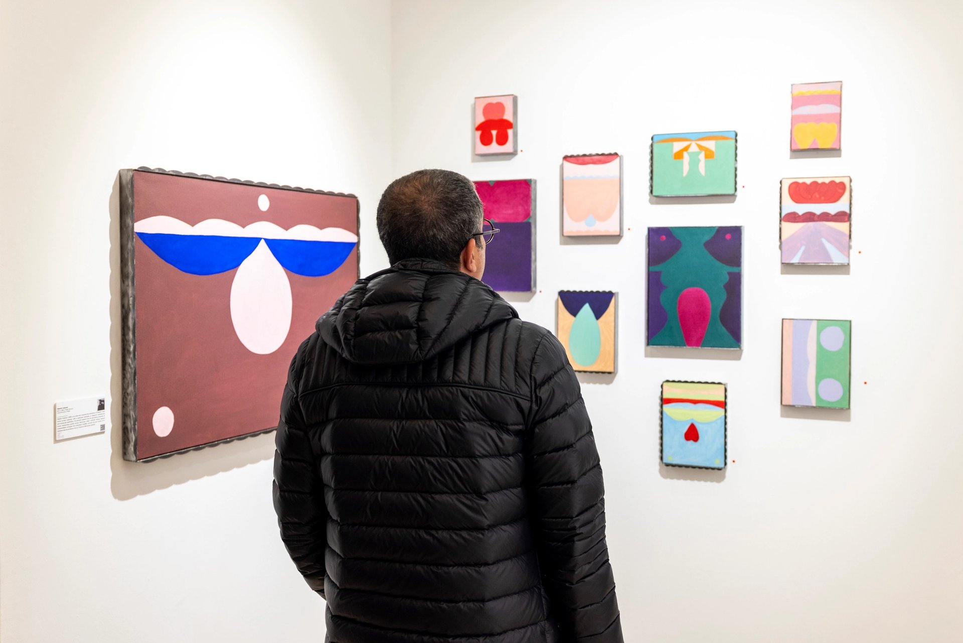 A visitor views work by Nassim Azarzar at Loft Art Gallery's stand. Courtesy 1-54