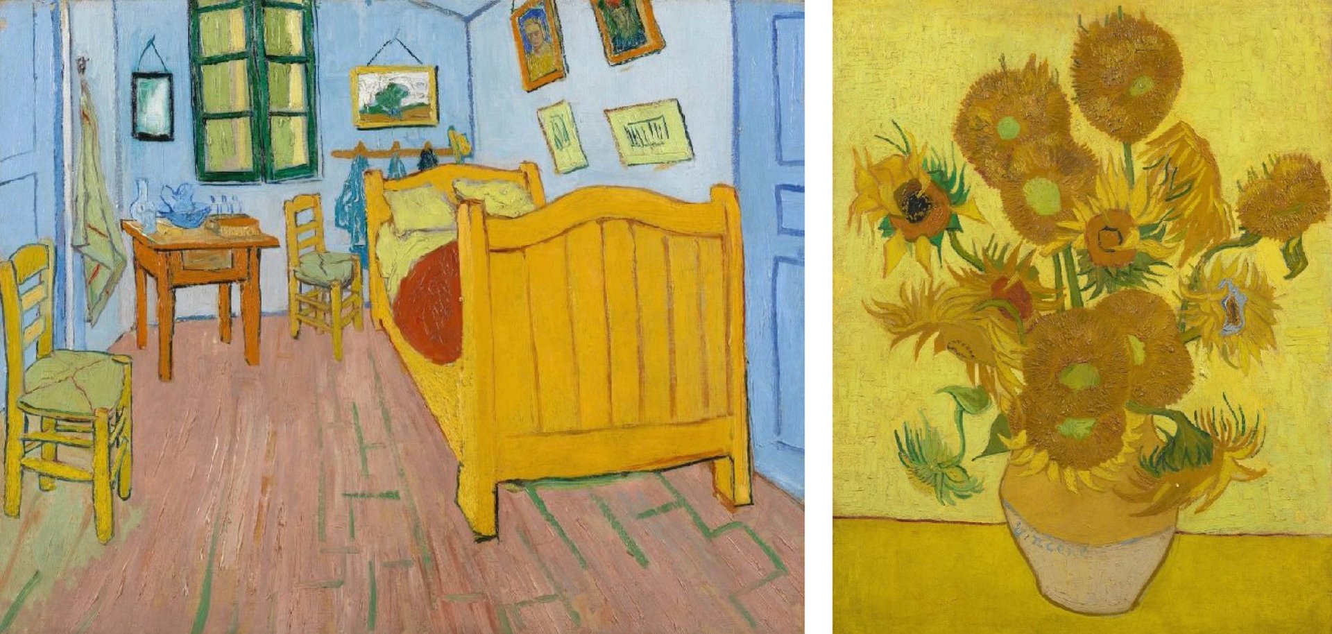 Van Gogh’s The Bedroom (October 1888) and Sunflowers (January 1889)