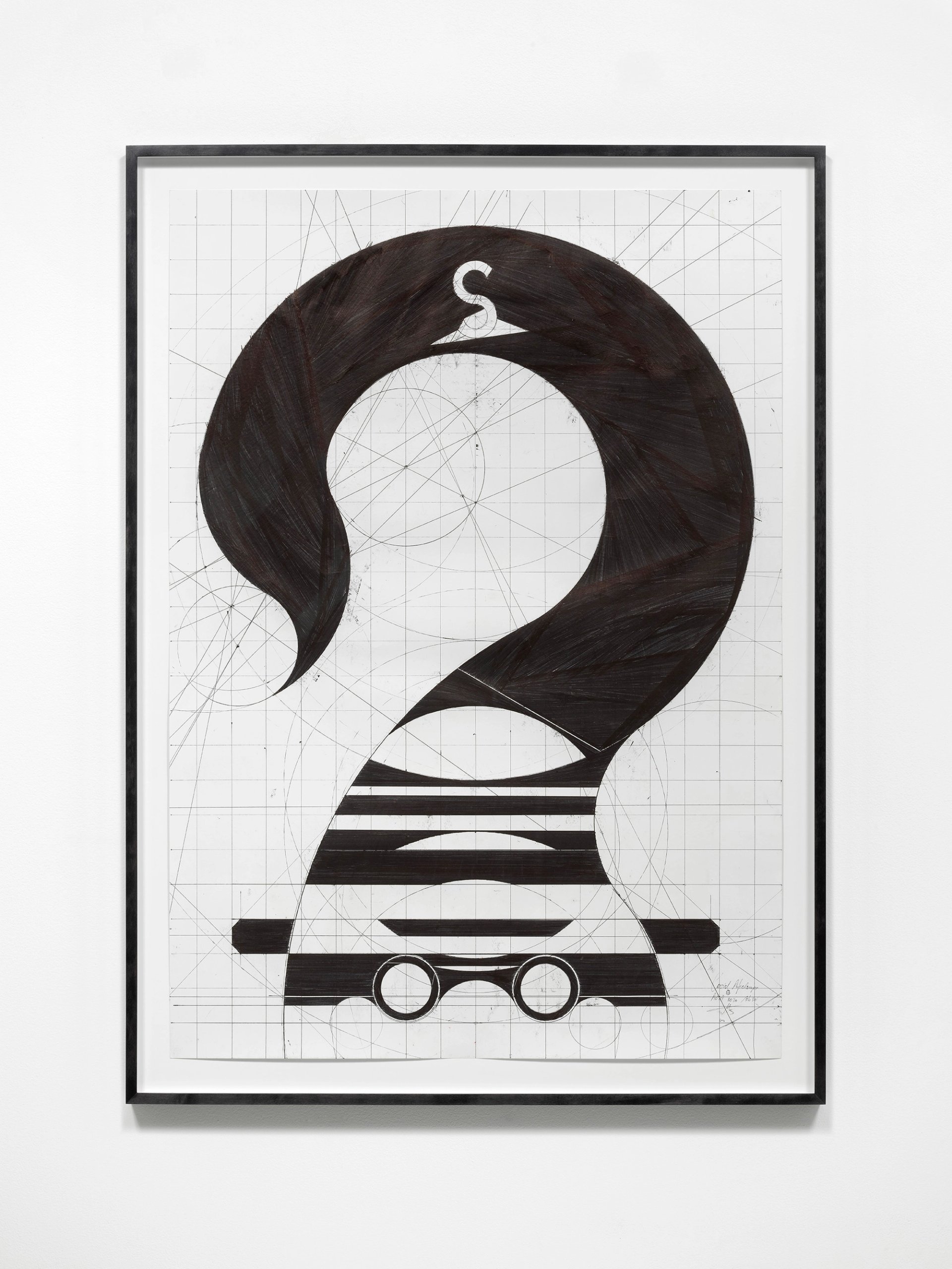 These imposing, morphing shapes with their schematic backgrounds seem to map out the systems that govern us. In a second space Mukendi presents Voyant, a robot made from cardboard, paper and handmade electrical wiring—suggestive, perhaps, of the ways one can break free.