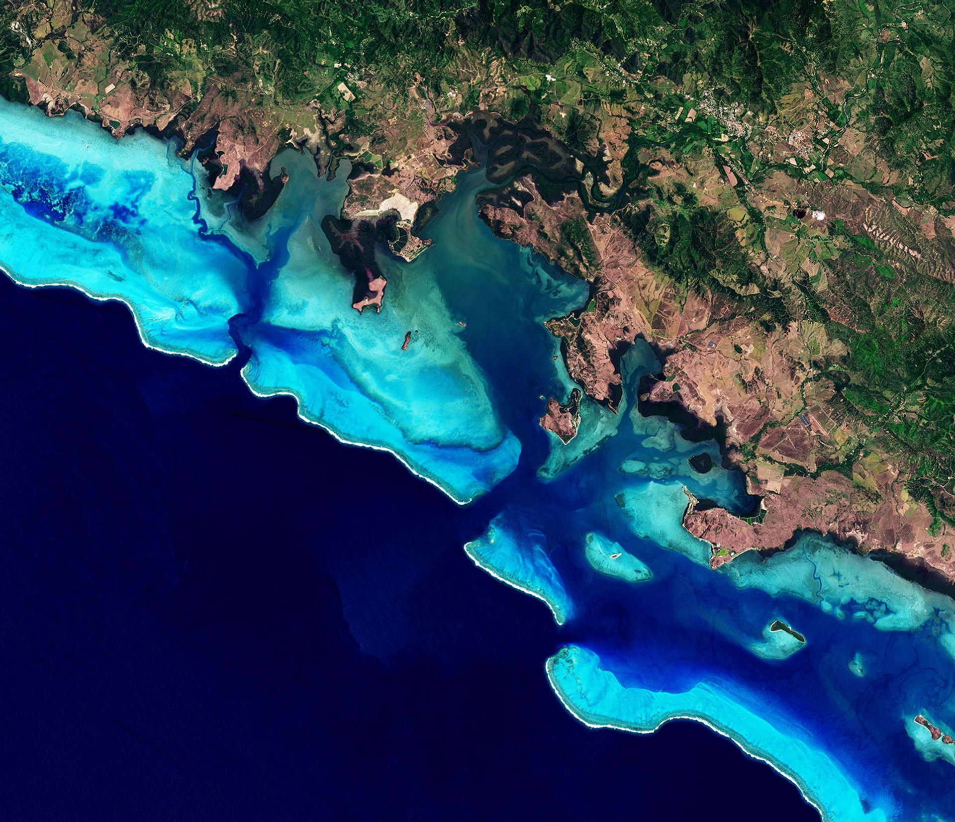 A satellite image of New Caledonia taken by Planet Labs, one of the founding partners of HeritageWatch.AI, for an existing Unesco project Courtesy: Planet