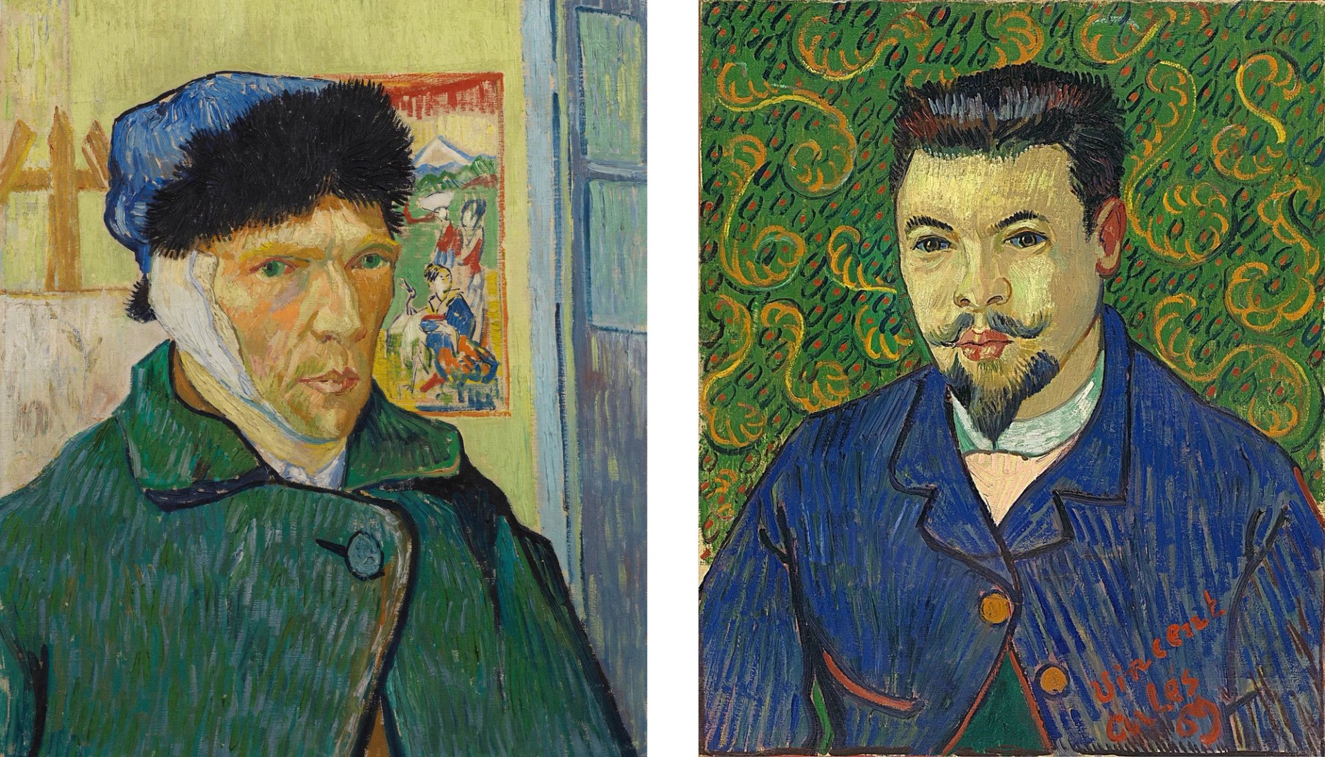 Van Gogh’s Self-portrait with bandaged Ear (January 1889) and Portrait of Dr Félix Rey (January 1889)