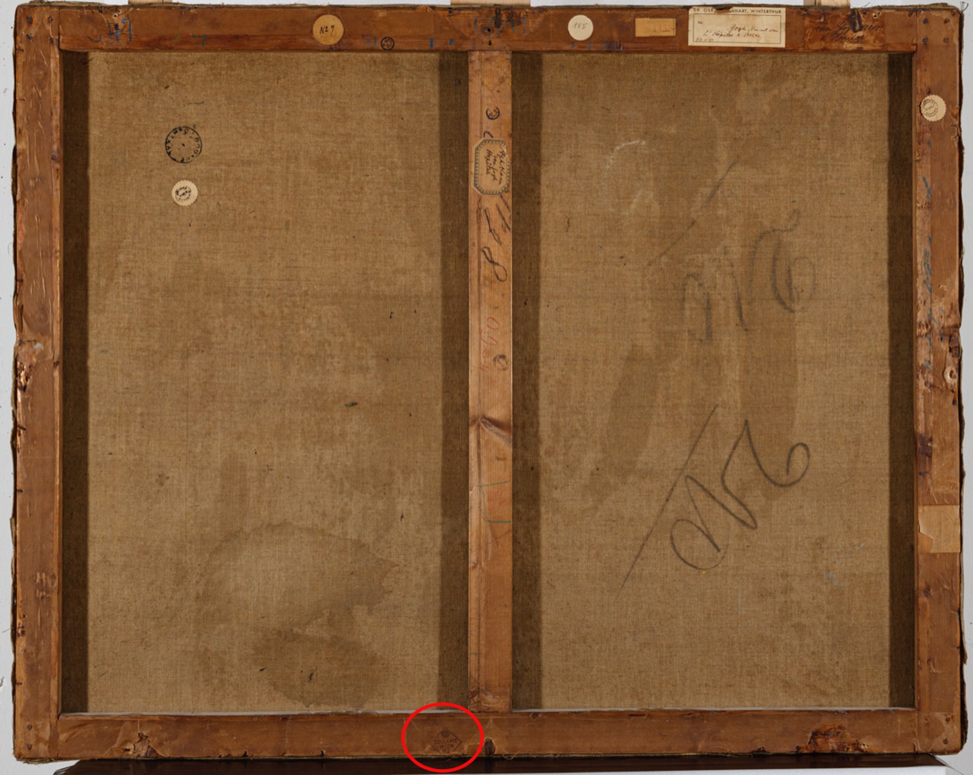 The unlined reverse of the canvas and the wooden stretcher also retain valuable evidence about early exhibitions and owners. On the back of The Ward in the Hospital at Arles is an Austrian customs rubber stamp, relating to the first time it was publicly exhibited, in Vienna in 1906.
