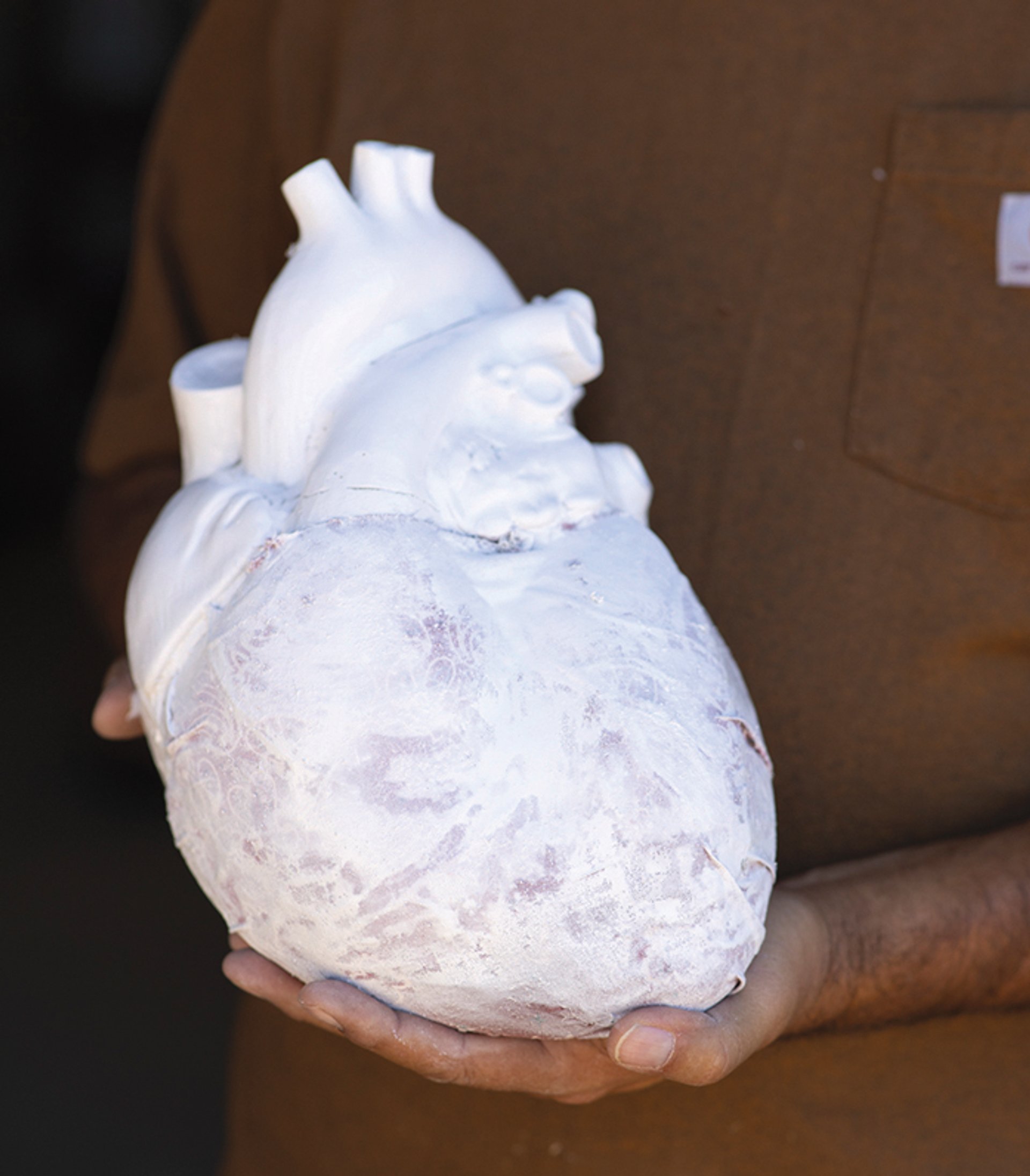 Gerald Clarke holds a model of a heart for his installation, The Heart is Fire Photo: Todd Westphal