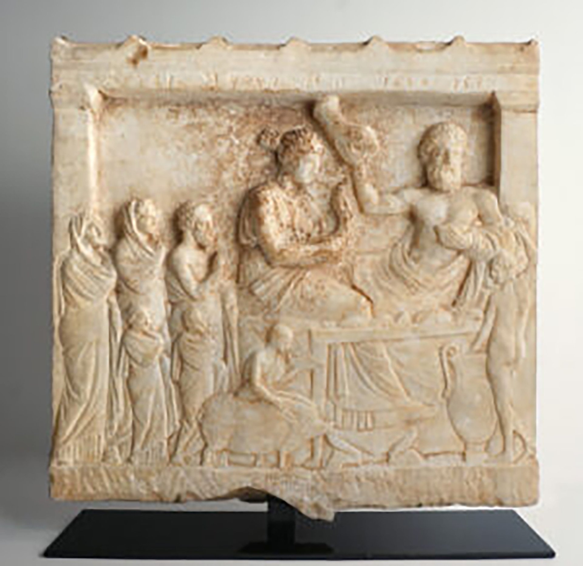 A grave relief from the late 4th century BCE or early 3rd century BCE, previously in the possession of late trafficker Robert Symes, has been returned to Greek authorities Courtesy the Manhattan District Attorney's Office