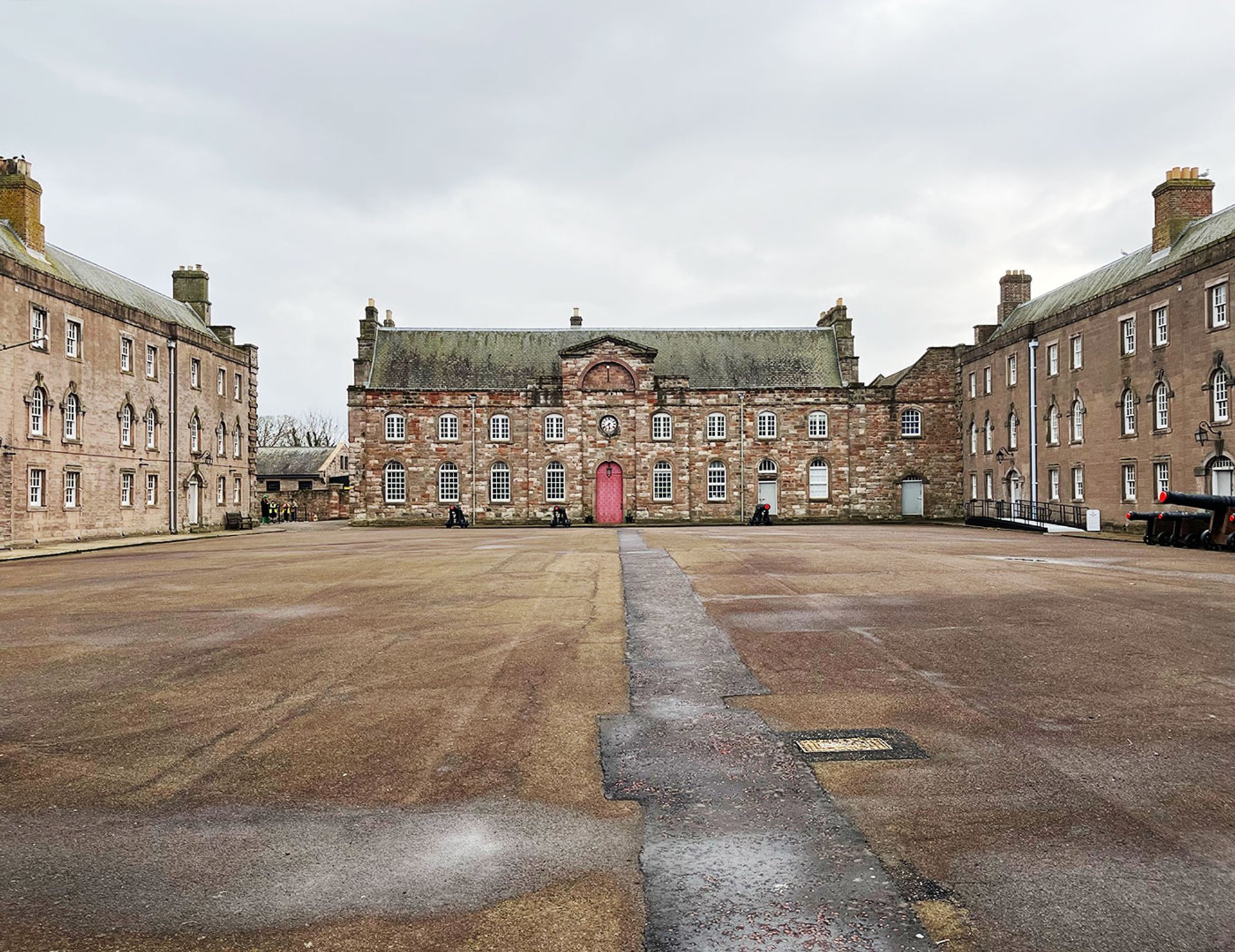 The parade ground of the barracks at Berwick-upon-Tweed, designed by Nicholas Hawksmoor, showing the three walls where Matthew Rosier's Parade is to be projected Photograph: The Art Newspaper