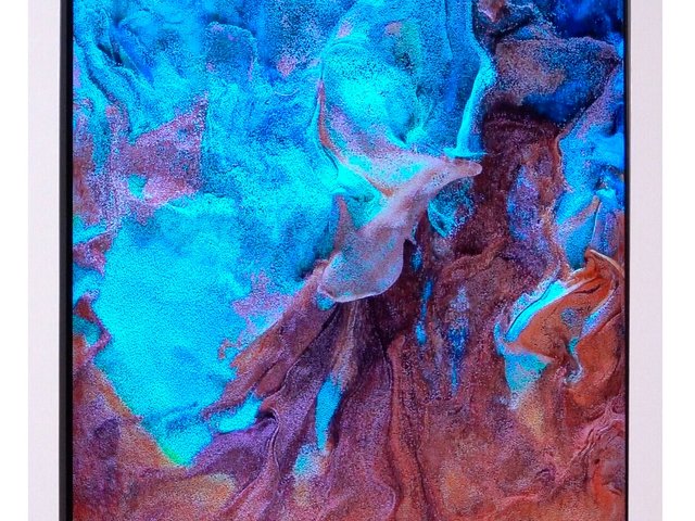 Meanwhile Fellowship, a gallery supporter of Dryhurst and Herndon’s The Call, was launching, with the show Exit Vectors, the work of a semi-autonomous AI artist, Keke, created by Dark Sando, an MIT graduate who prefers to remain anonymous. Keke's creations are offered with hand-painted physical translation, acrylic and oil on linen, produced by the Sable Collective—a group of UK-based painters led by Nicholas Archer. Fellowship describes these hand-painted translations as "a hybrid—an AI-generated vision shaped by human touch".