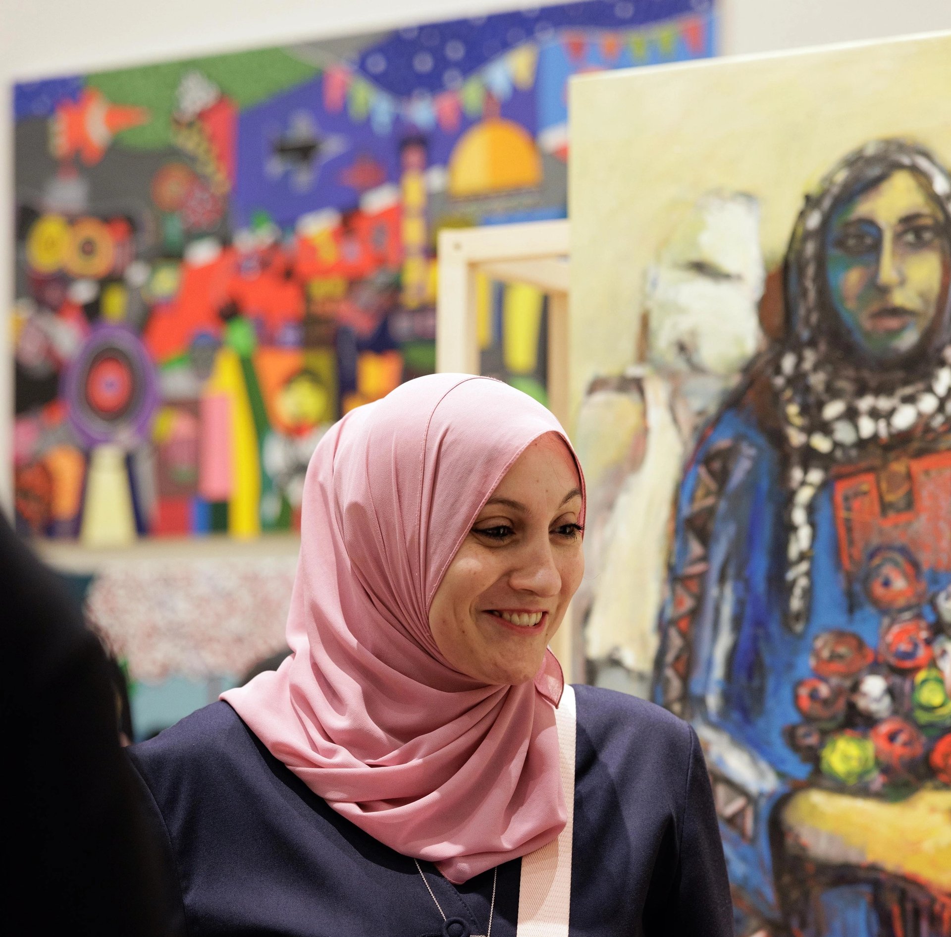 Dina Mattar at the opening of the exhibition Eltiqa: How to Work Together? at Jameel Arts Centre, Dubai Courtesy Art Jameel