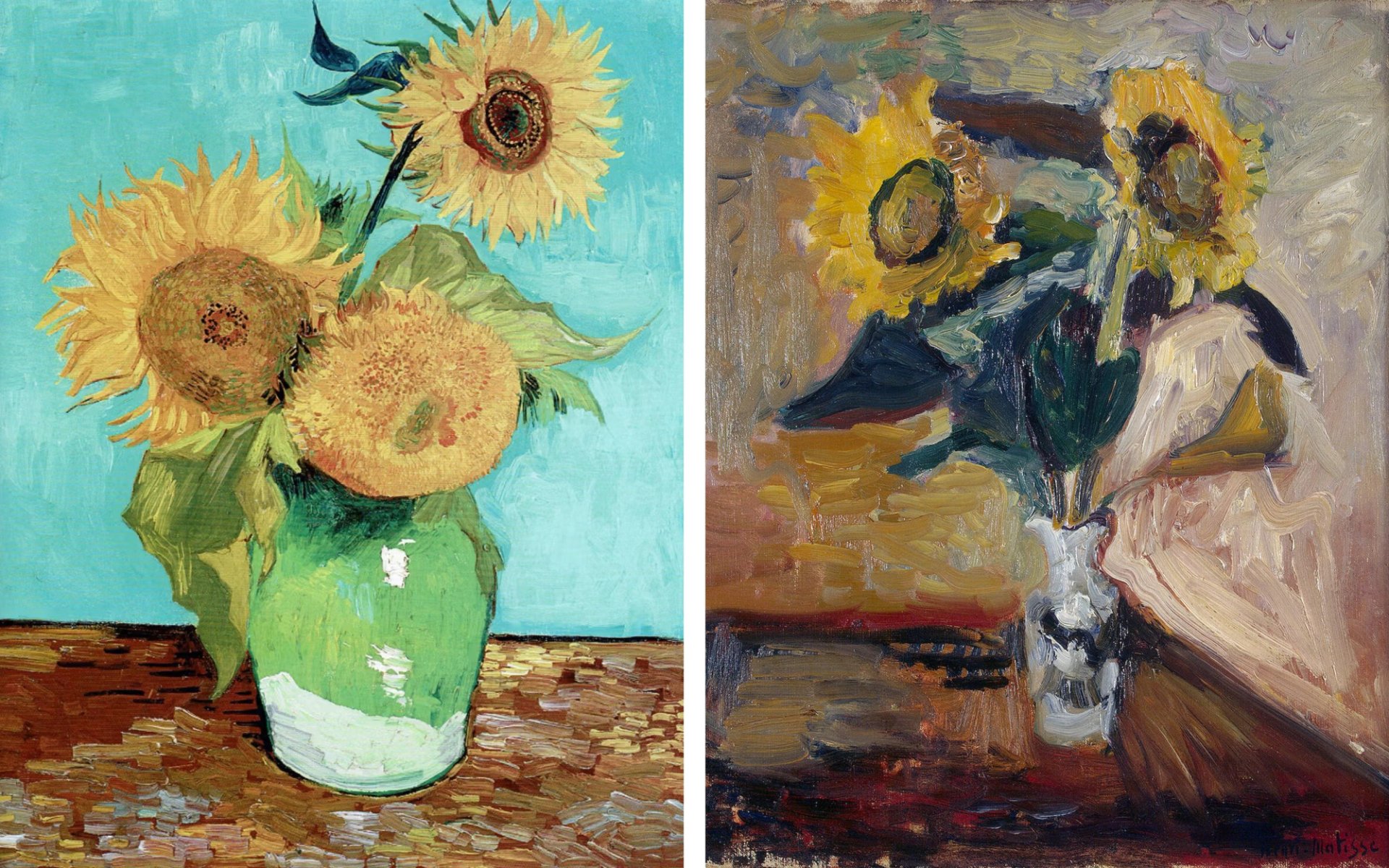 Van Gogh’s Three Sunflowers (August 1888) and Henri Matisse’s Vase of Sunflowers (1898)