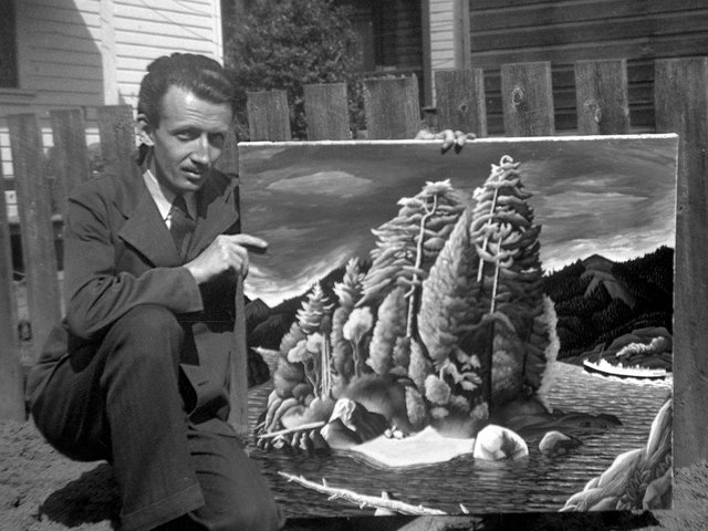 Thomas Kinkade’s Untitled (Self-portrait with a Paint Stained Shirt) (around 1979), from his university years, was found in the artist’s vault after his death Photo: Jeff McLane, courtesy the Kinkade Family Foundation