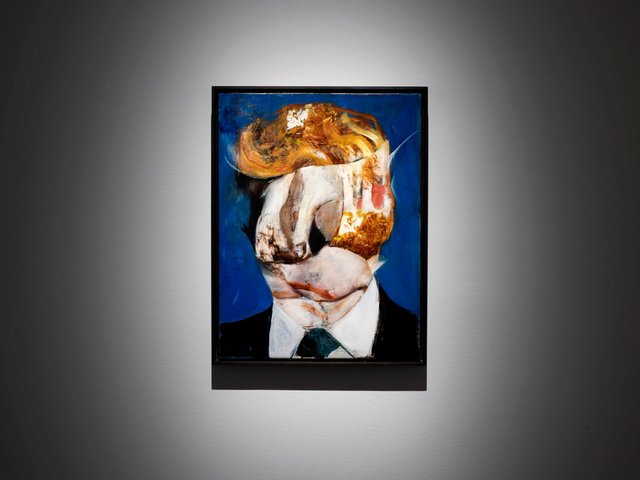 David Salle, The Green Vest (2025), oil; acrylic; flashe; and charcoal on archival UV print on linen © David Salle / ARS New York, 2025. Photo: John Behrens. Courtesy Thaddaeus Ropac gallery, London · Paris · Salzburg · Milan · Seoul.