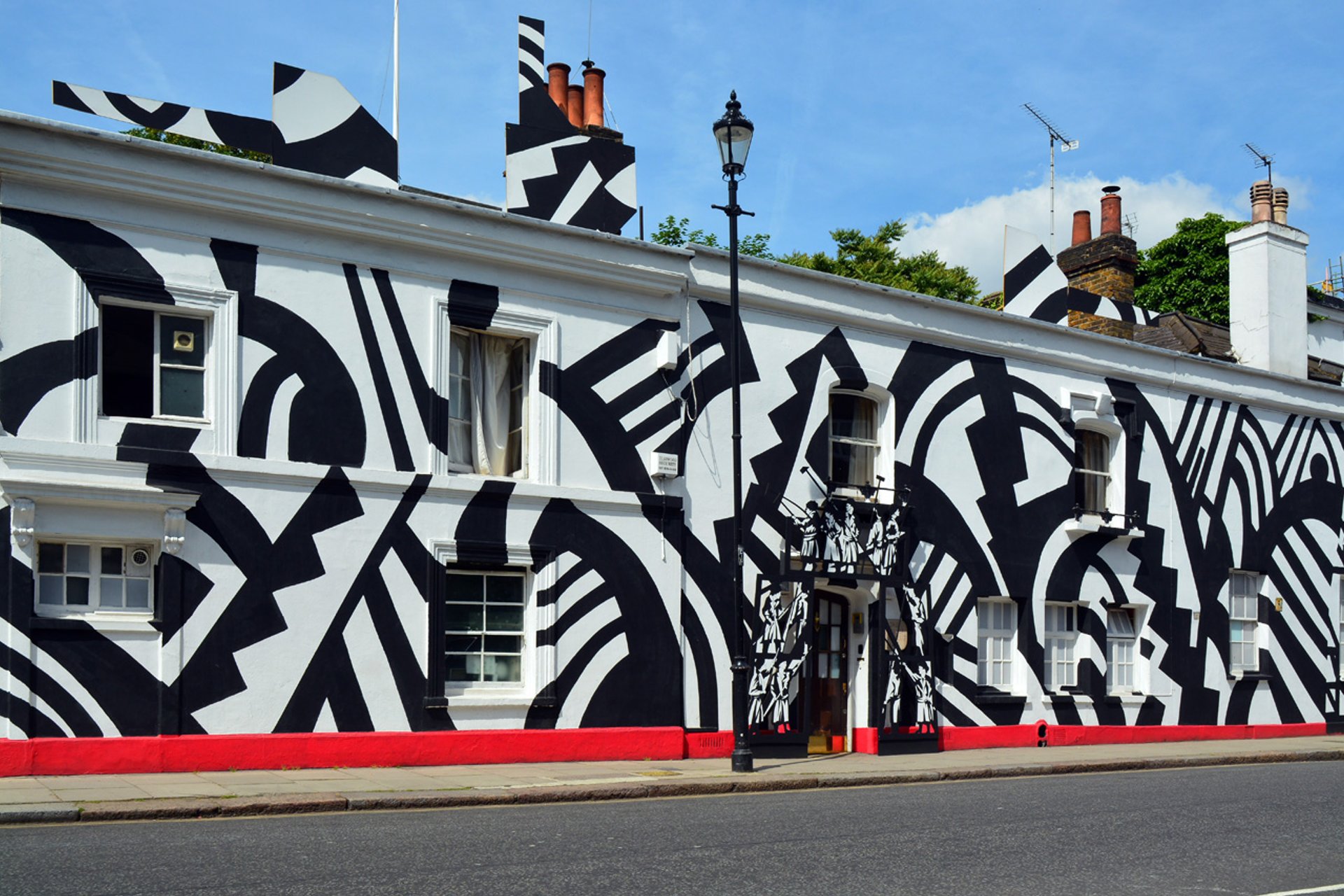 At the Chelsea club, keeping art at the centre of the community has a visual dimension: at Christmas and again in the summer, the outer walls are adorned with murals, usually colourful and striking, and created by club members.