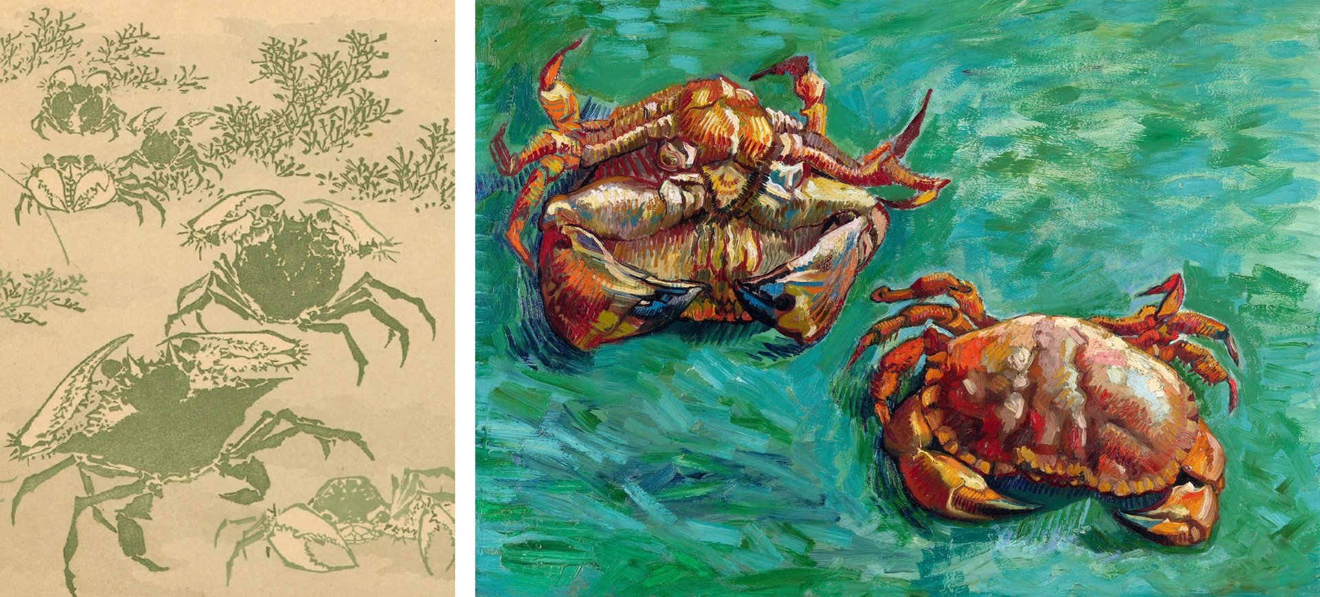 Katsushika Hokusai’s Crabs in Seaweed and Van Gogh’s Two Crabs